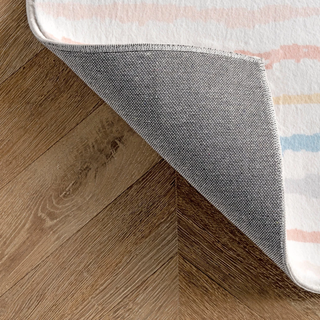 Both children and adults alike are bound to fall in love with this rug. It features a creative pattern and a beautiful pastel color palette, perfect for your child’s playroom, nursery, or bedroom. Prized for their durability and ease of care, synthetic rugs are the perfect choice when spills and or regular foot traffic are at the top of your mind.
