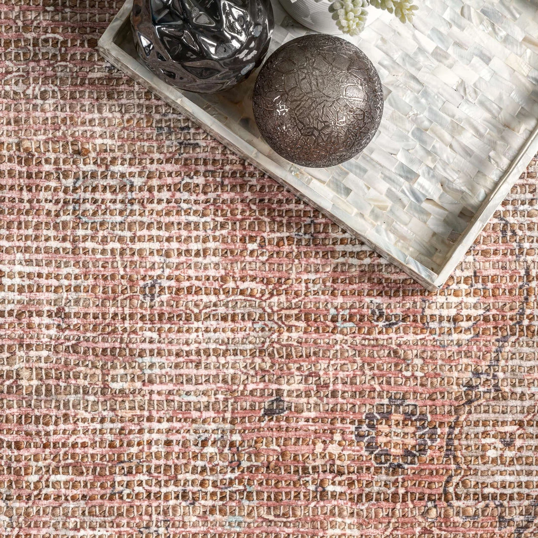 Artfully handwoven by artisans in India, this rug embodies classic Persian design. The blend of surface dyed jute and polyester fibers give this the look of a vintage market find.
