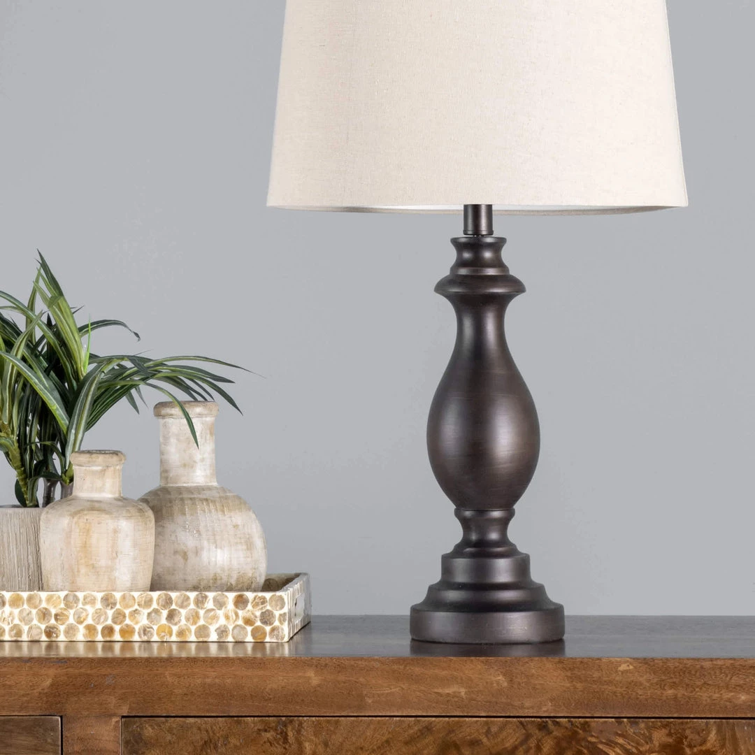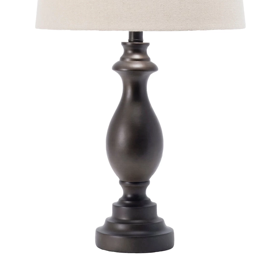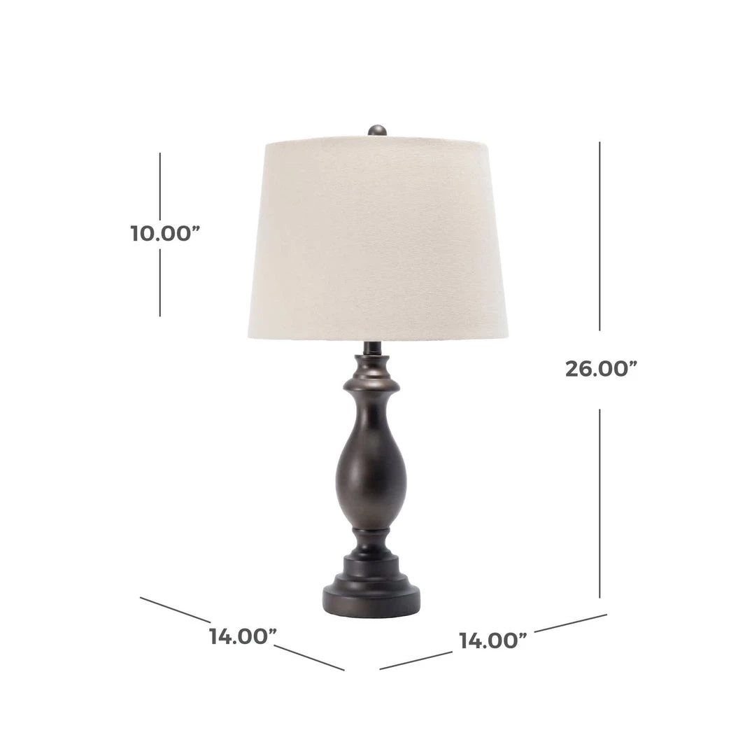 Light up your living space with this traditional style lamp set. Crafted of durable metal, the lamp’s stacked base provides a sturdy structure to ensure years of use. The cloth empire shade perfectly diffuses ample lighting, and the convenient rotary switch makes the lamps easy to control. This set of two will help balance out your nightstands or end tables.