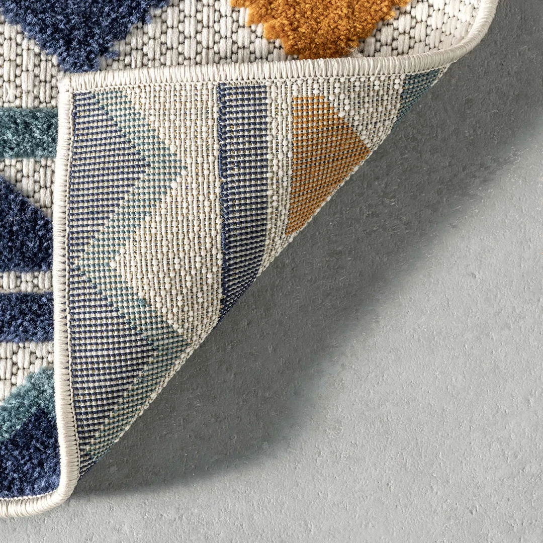 This area rug features a dynamic textured pattern with highs and lows, paired with a striking bold color palette and modern design. It is sure to make a stunning statement whether you decide to place it inside or outside your home. This rug is built to last, resisting stain, fade, mold and mildew.