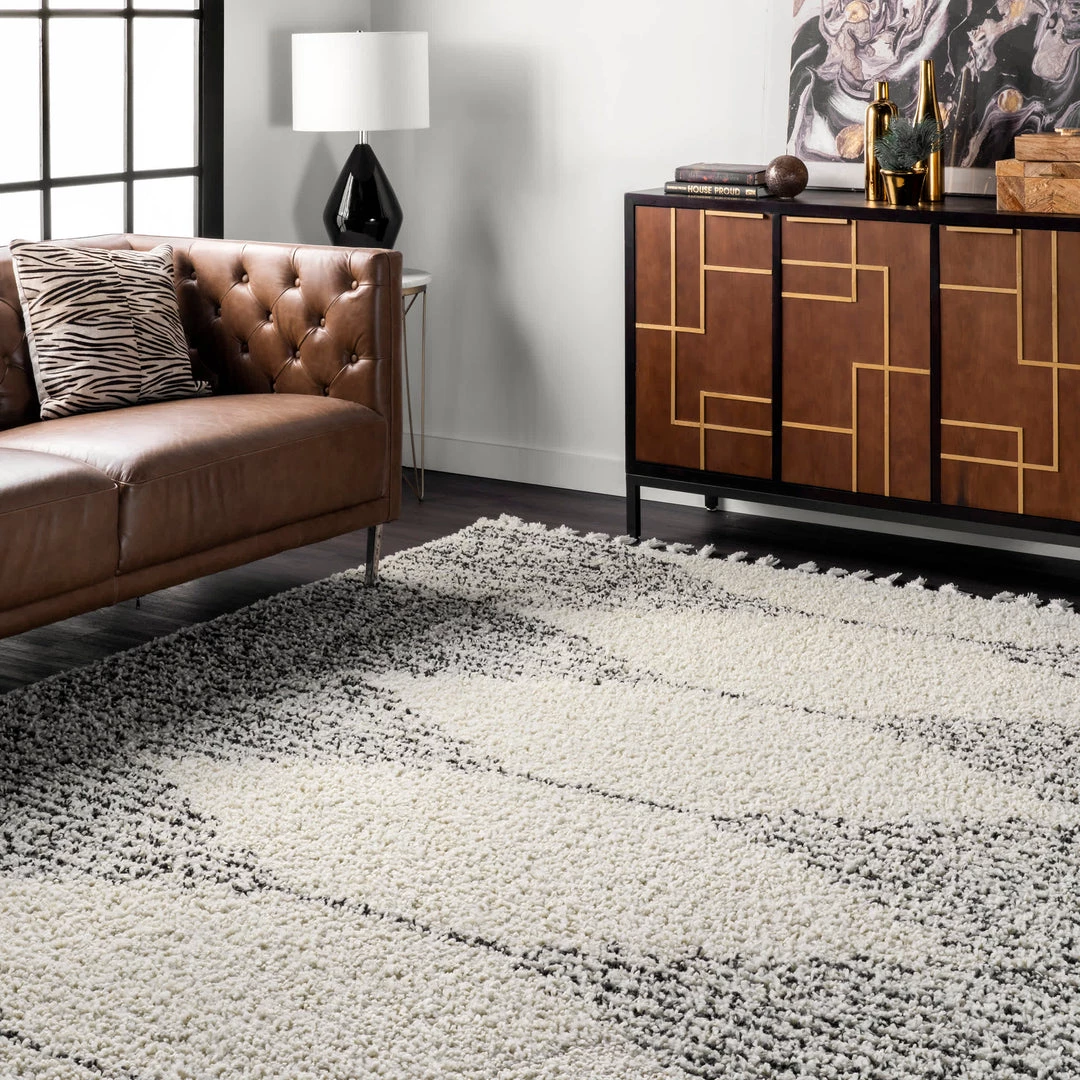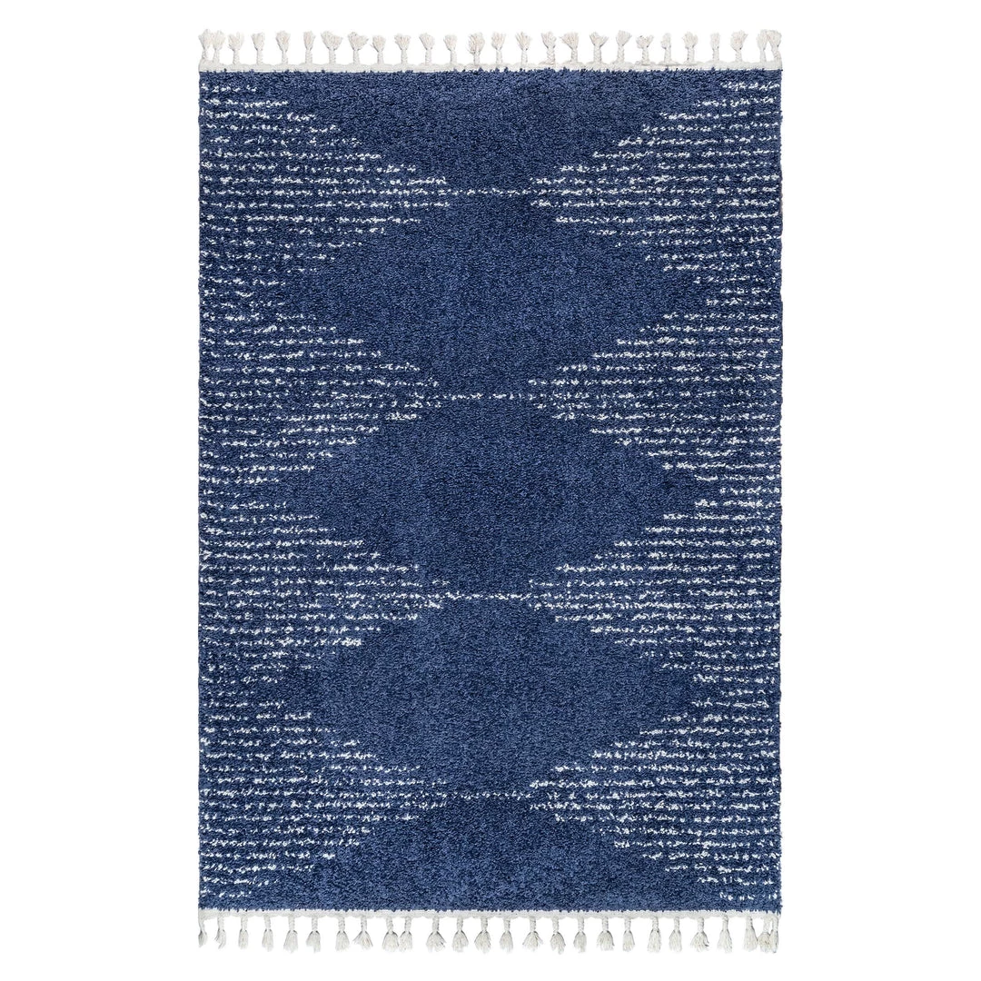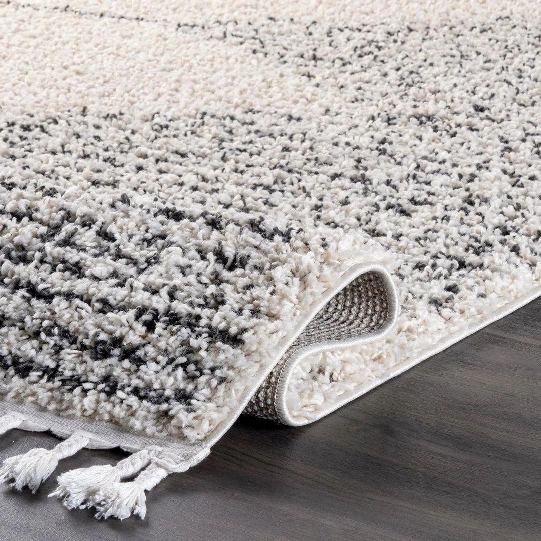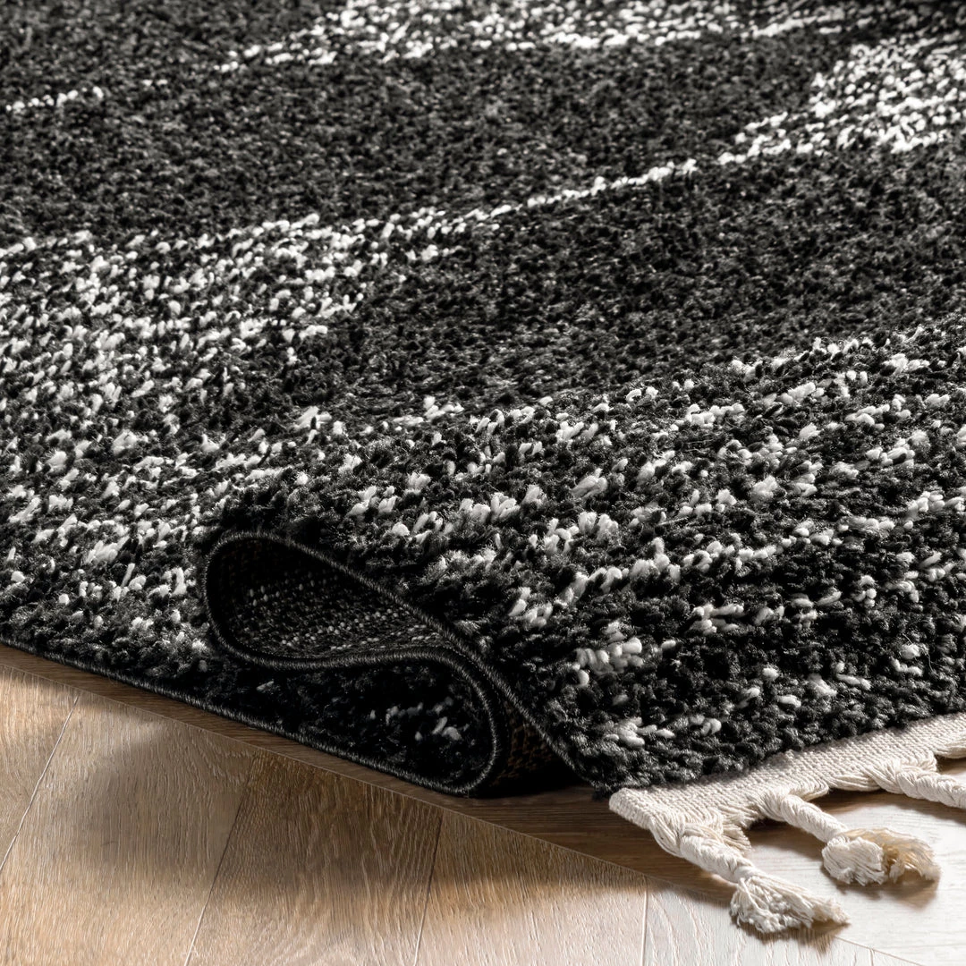 Modern, edgy style combined with traditional Moroccan accents make this rug shine. This rug boasts a cozy shag pile perfect for your bedroom or low traffic living room.