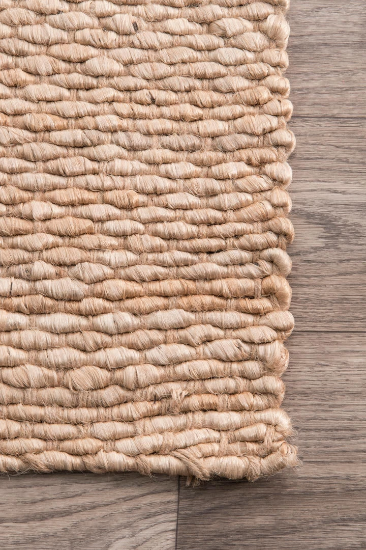 Handmade using 100% jute, the comfortable, textured weave of this rug is like a massage for your feet. Neutral tones seamlessly tie the disparate elements of your room together. In a living room, a grey or brown sofa accentuates the earthy vibe of this rug. It also serves as the perfect base for layering patterned rugs.