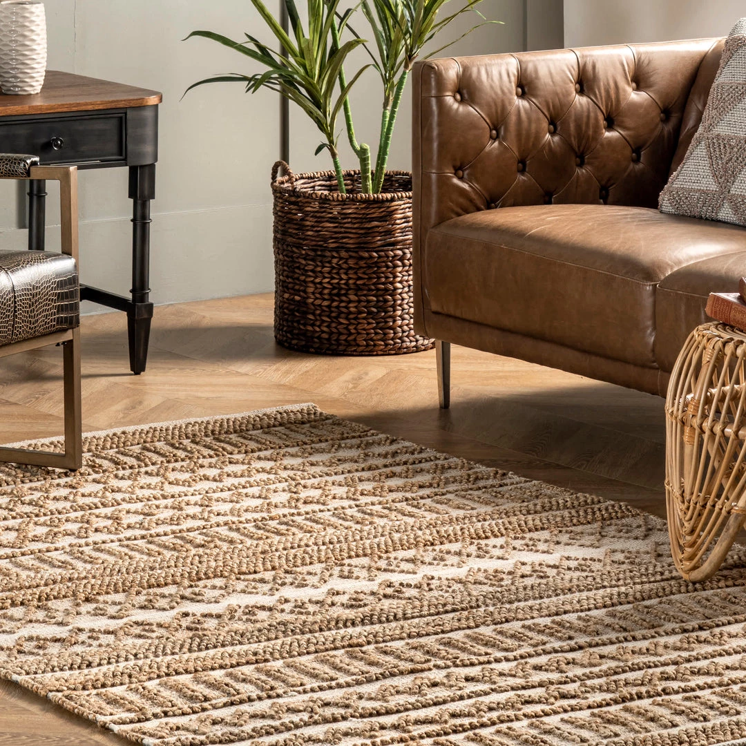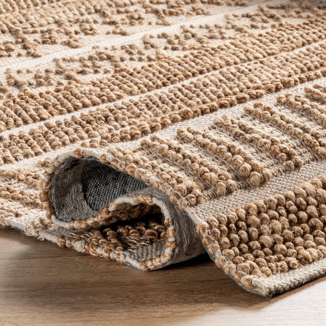 Hand crafted in India, this textured jute and cotton rug is the perfect refreshing addition to your home. This rug features a high low tribal pattern that will make any space feel warm and inviting.