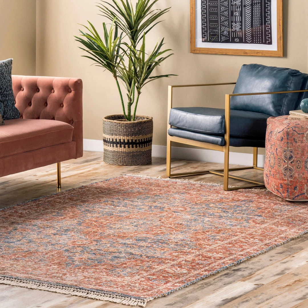 Artfully handwoven by artisans in India, this rug embodies classic Persian design. The blend of surface dyed jute and polyester fibers give this the look of a vintage market find.