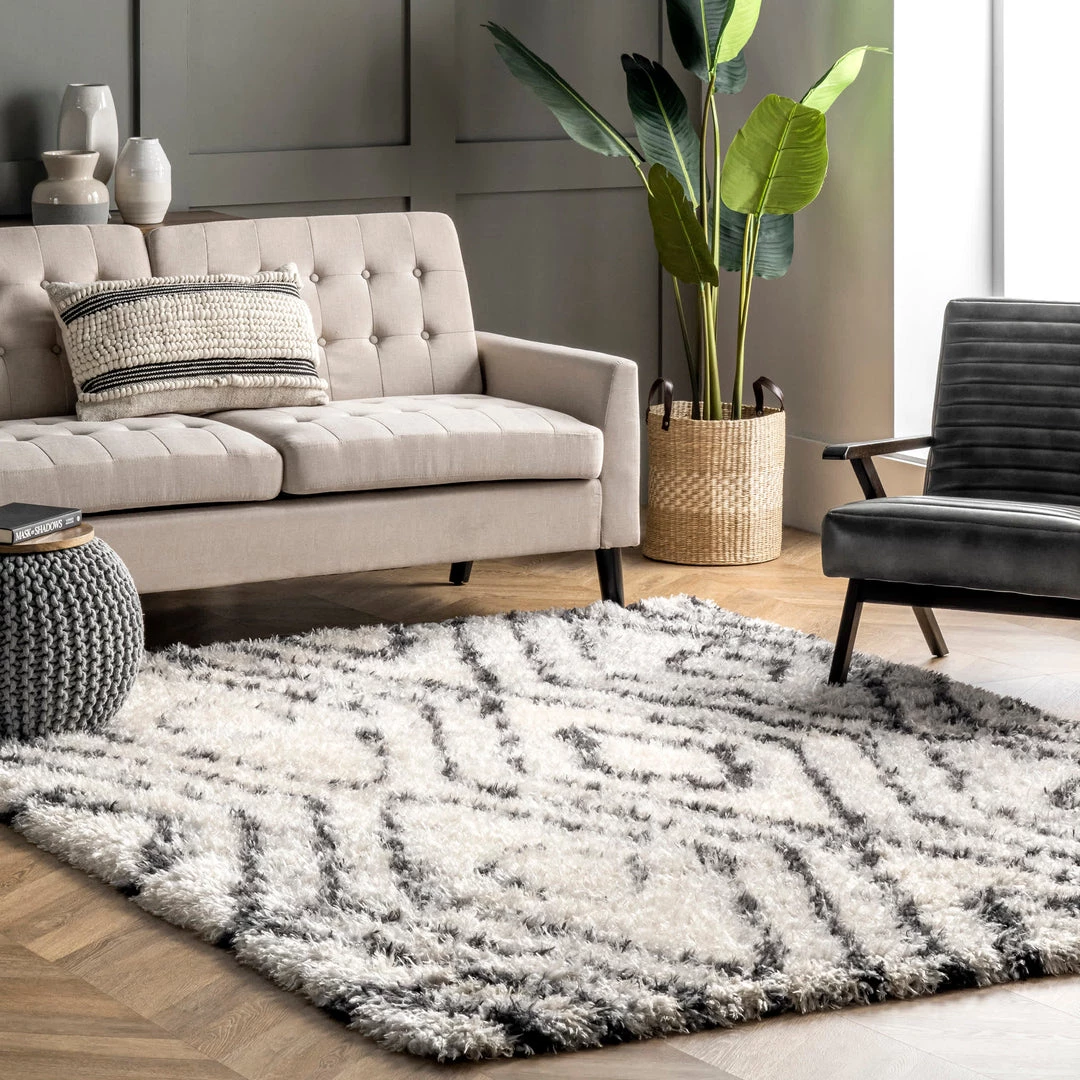This rug boasts a soft and cozy shag pile perfect for your bedroom or low traffic living room. The contemporary style accents make this rug standout wherever it is placed.