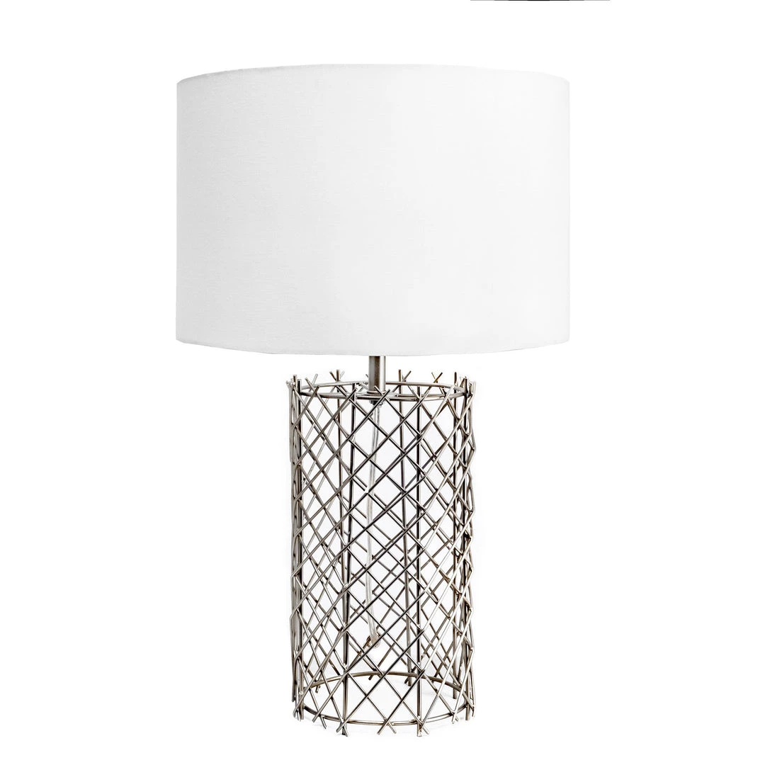 Draw inspiration from classic architecture elements with this Carlisle table lamp. Supported by a column-style body with a distinctive crisscross see-through form, this table lamp brings a modern update to any tabletop and inevitably looks like a piece of art. A solid-colored white drum shade tops this table lamp to exude a sense of simplicity and distribute warm, balanced lighting to your space. Put together this lamp for immediate use and display by simply connecting the shade, and operate it smoothly using the three-way switch.