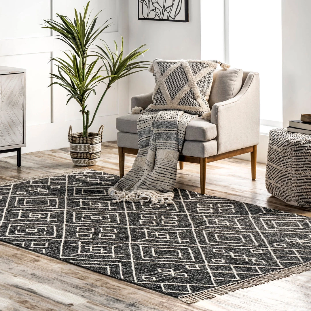Beautiful to look at and lovely to touch, this area rug is a perfect blend of beautiful and cozy. Constructed from cotton and wool, this rug is lightweight and soft. The tasseled edges lend a sense of elegance, while the worldly inspired design will add character to your space.