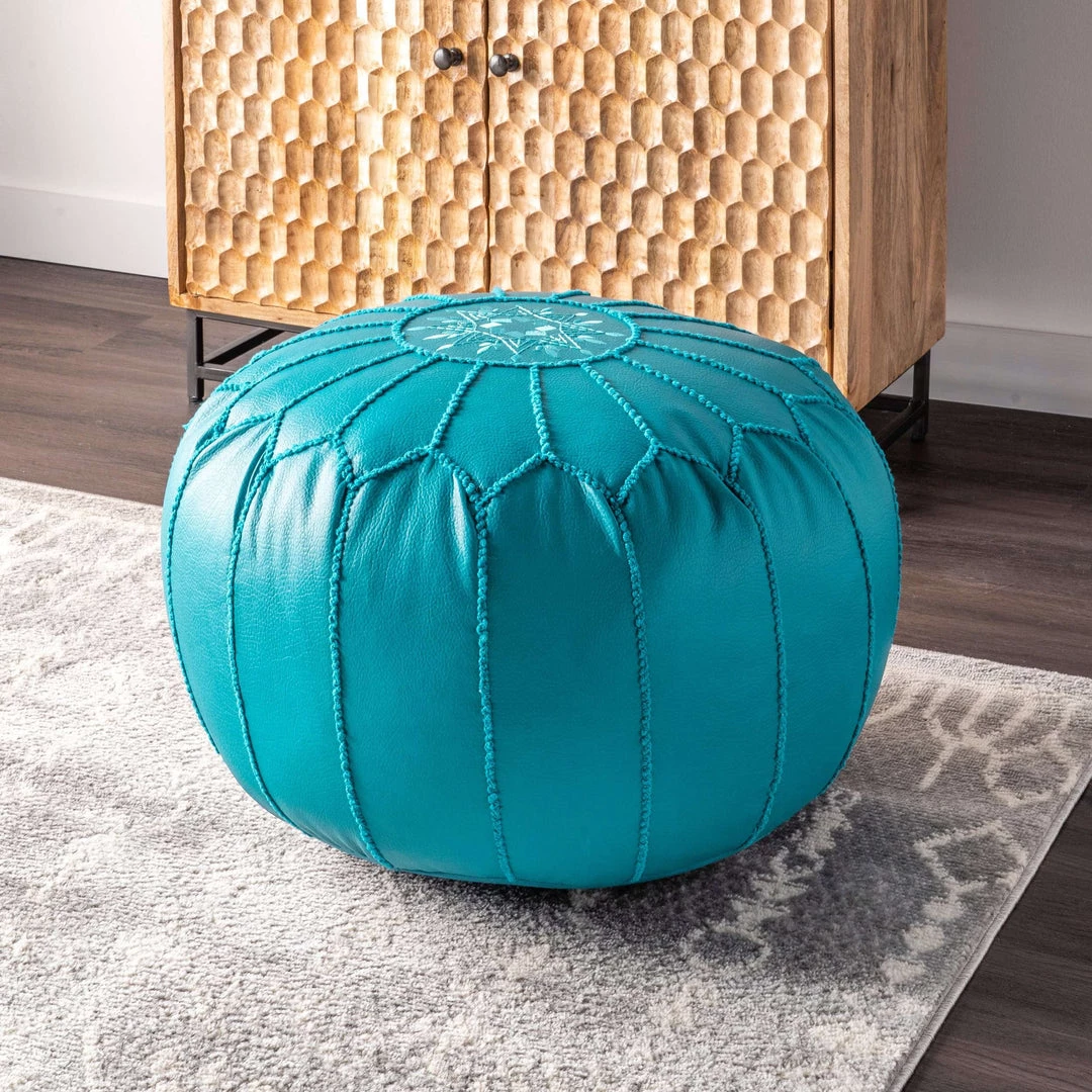 Elevate any room in your home with this classic Moroccan ottoman. This faux leather option doesn’t sacrifice any style. Perfect for décor or functional use.
