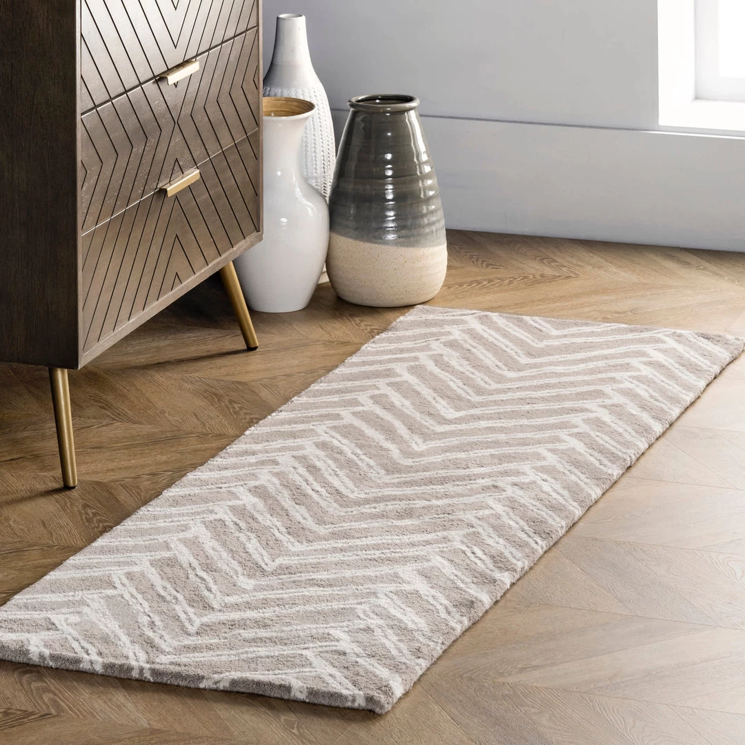 Enjoy this fun chevron pattern in a variety of colors. Hand tufted of wool in India, this rug adds warmth and a trendy touch to any space.