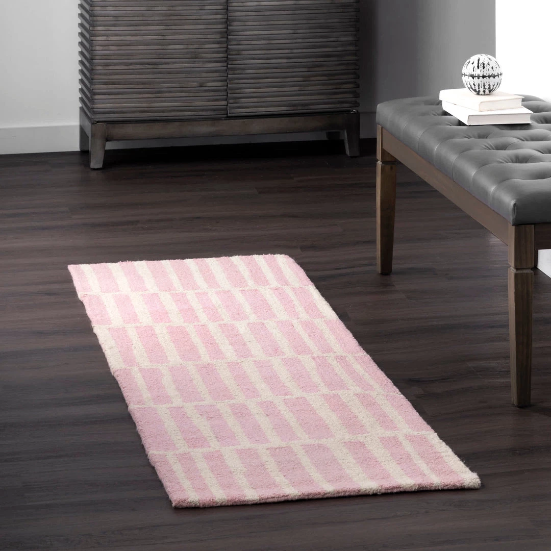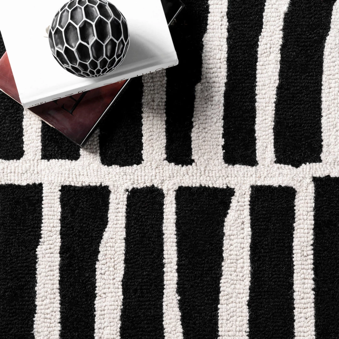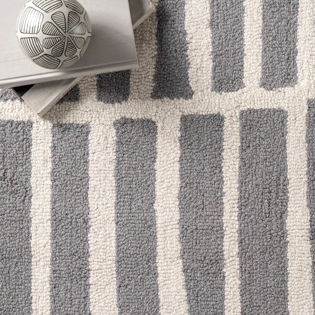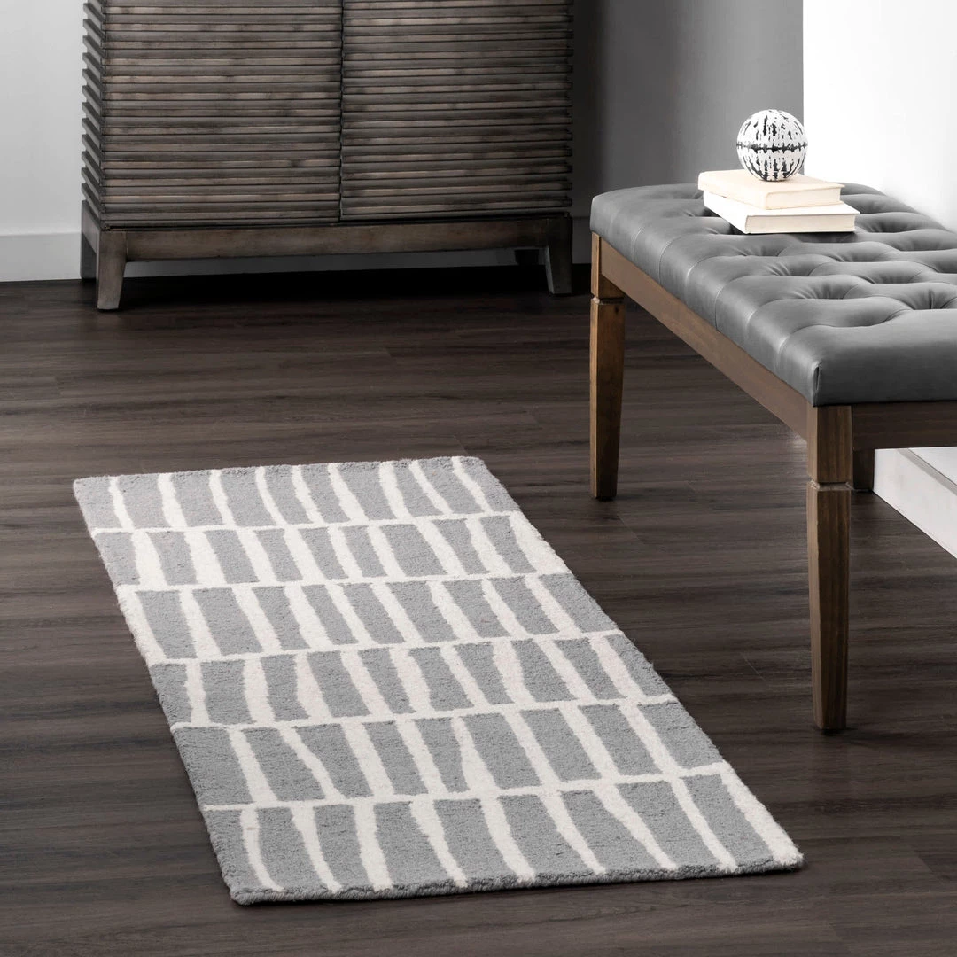 Add a touch of contemporary flair to your home with this rug. Available in a variety of colors, it is sure to make a statement wherever it is placed. Soft and durable, this wool rug is hand tufted and unique to the artisan who made it.