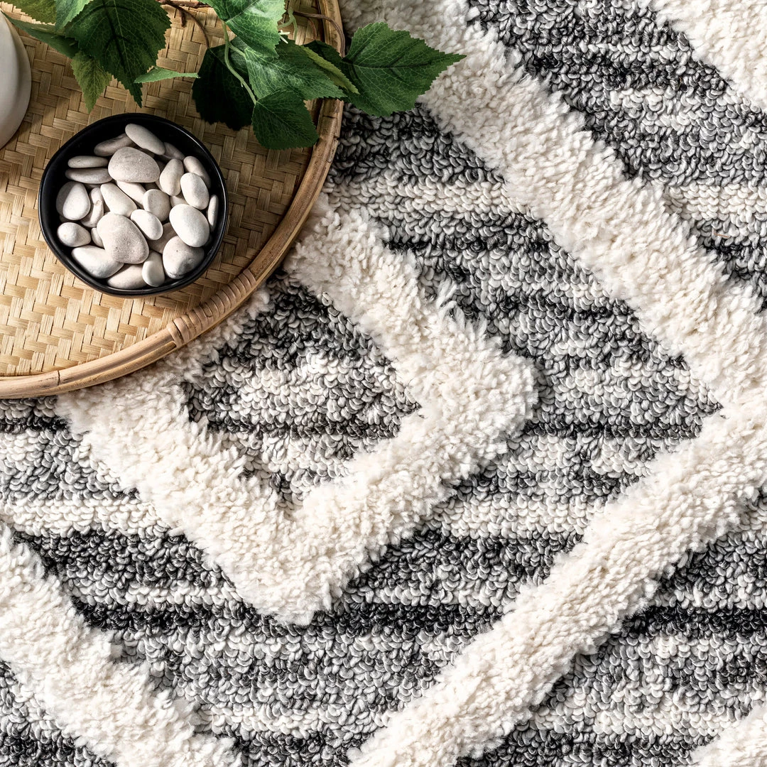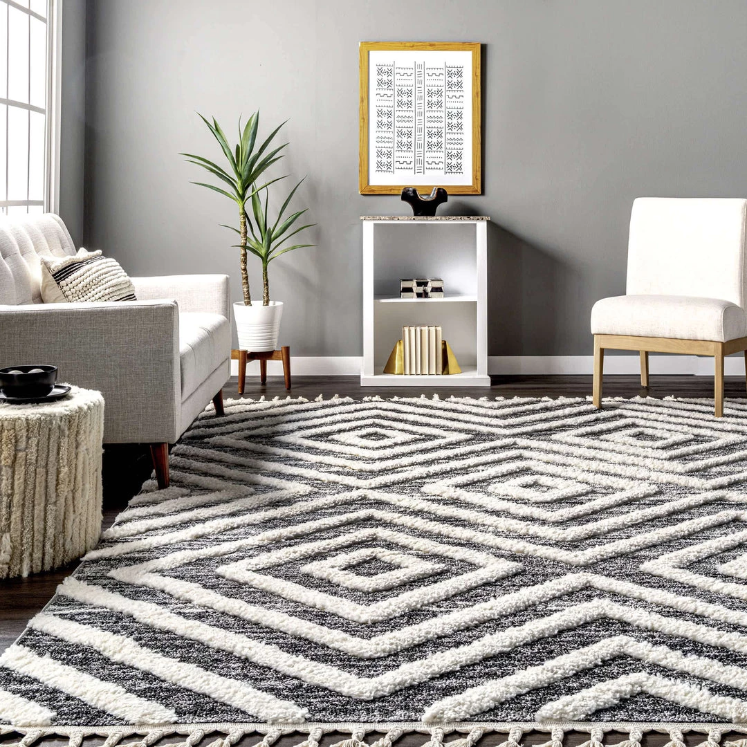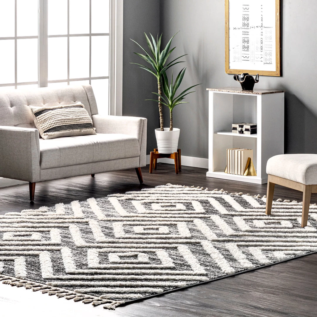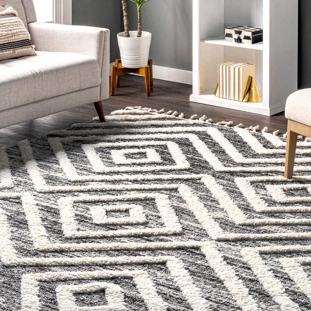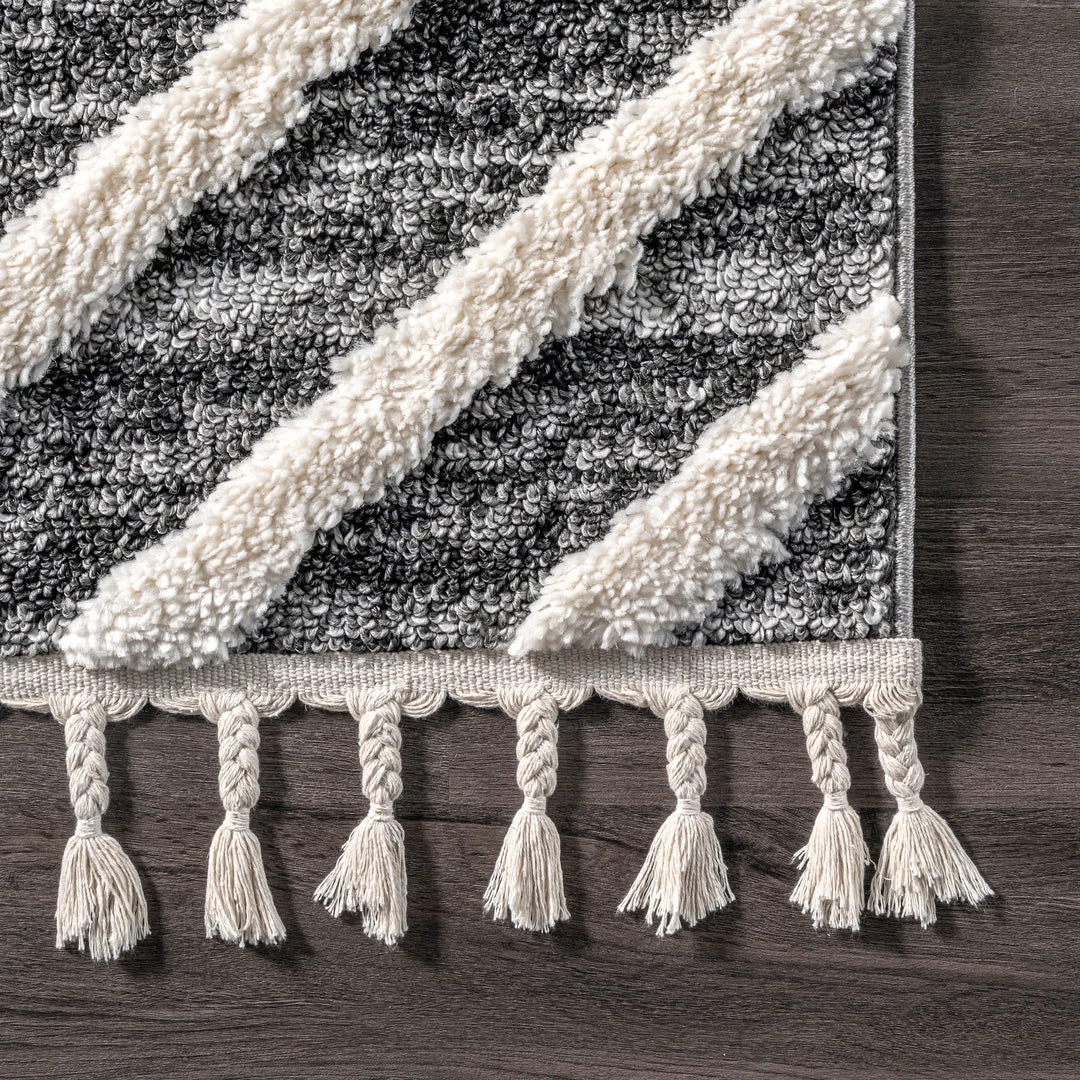 This luxurious rug’s dreamy texture is exactly what your floor was lacking. An eye-catching pattern with soft shaggy accents and a neutral color palette pair seamlessly with virtually any decor scheme. Braided tassels on both ends of this area rug create just the right amount of detail.