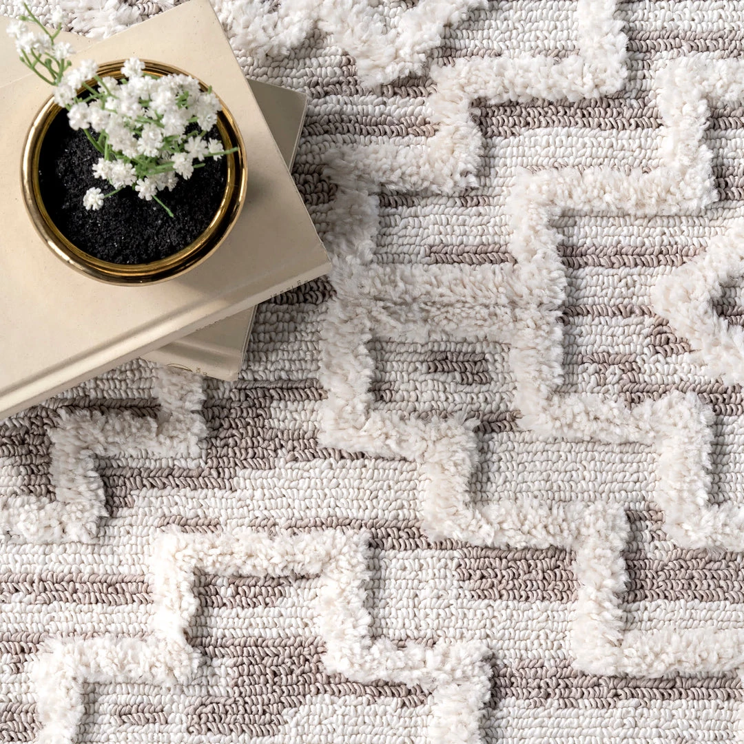 This dynamically textured pattern with highs and lows will add a touch of contemporary flair to your space. Machine made in Turkey of silky soft polyester, each piece offers a neutral color palette that will fit seamlessly in virtually any decor scheme.