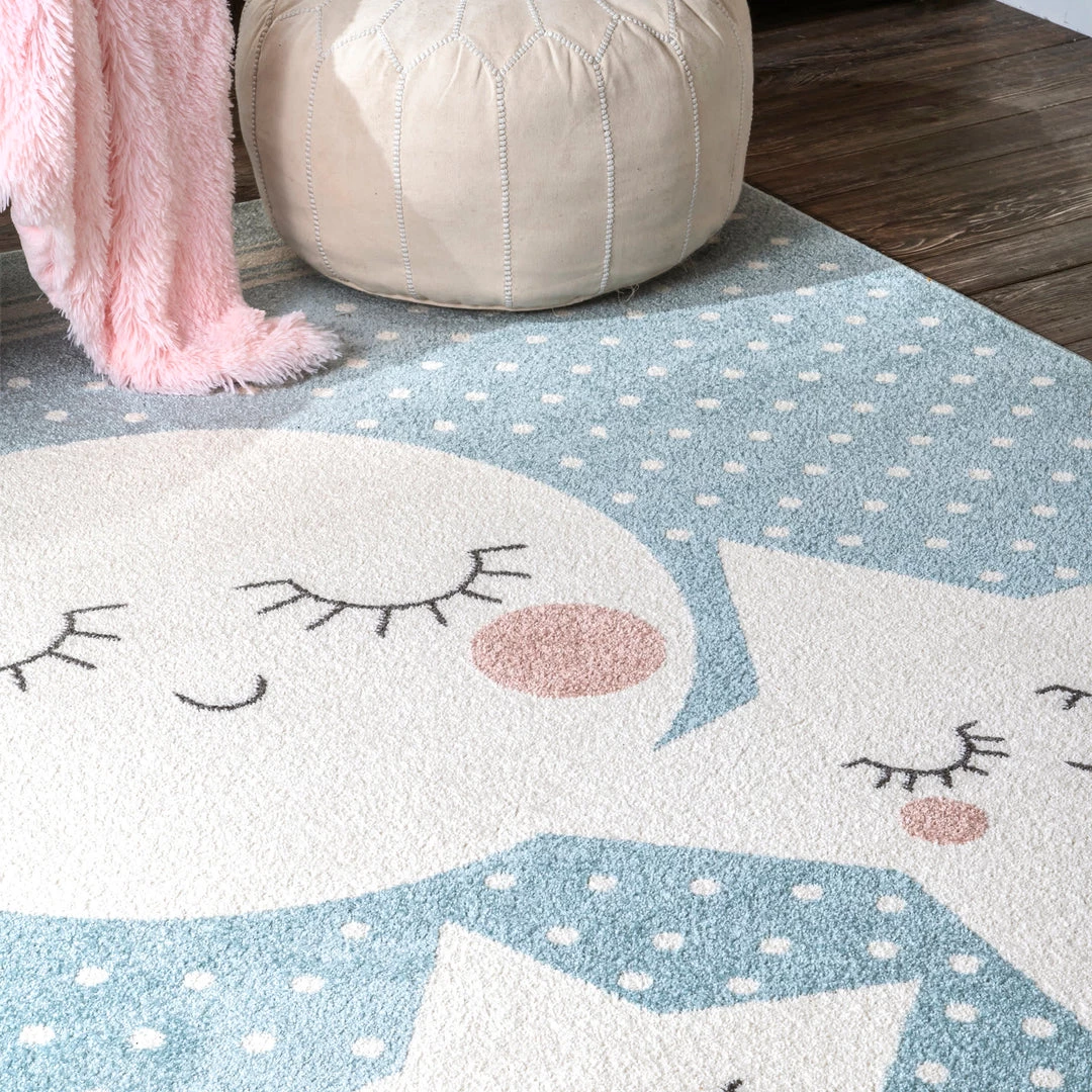 Fun, whimsical, and just right for your playroom or nursery. Made with soft, durable synthetic material, this rug will stand up to everyday messes and is kid and pet friendly.