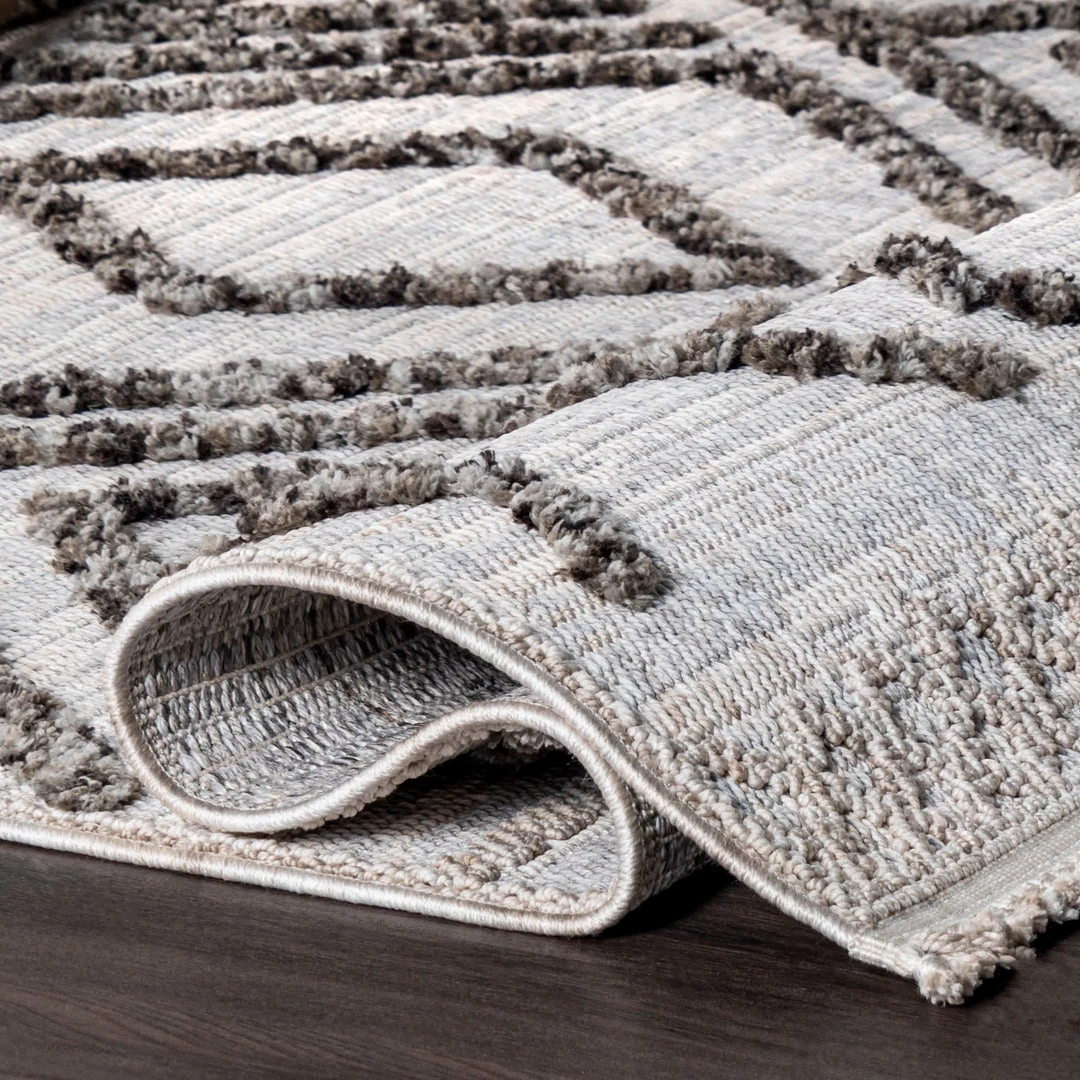Time to let yourself and your loved ones sit back and relax with this geometric diamond tasseled area rug. A gorgeous bold pattern with raised diamond accents and knotted tassels lining the ends. A perfect addition to any space from modern to bohemian. Enjoy every room in your home with our pet-friendly and easy to clean area rugs.