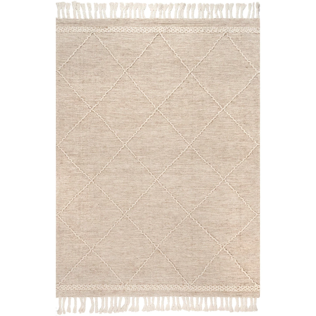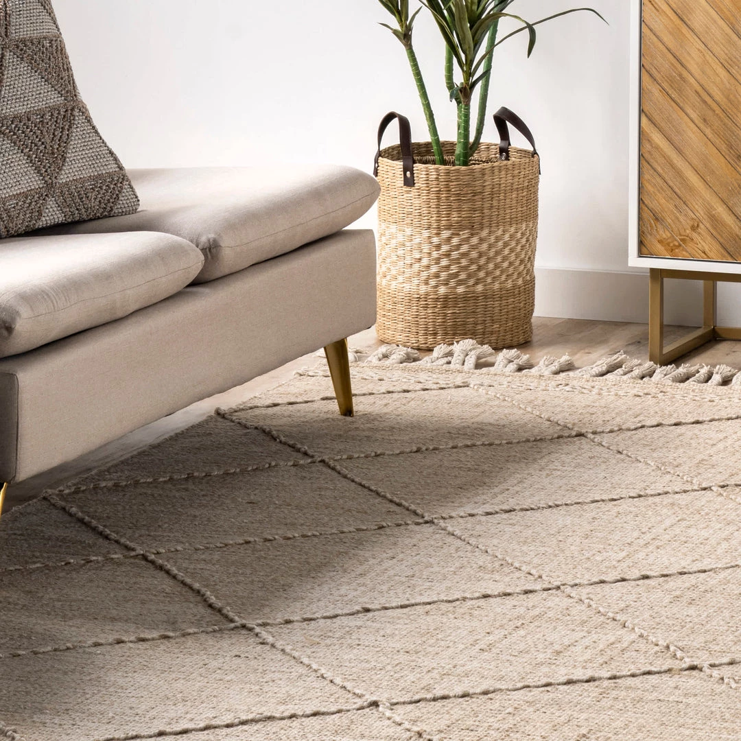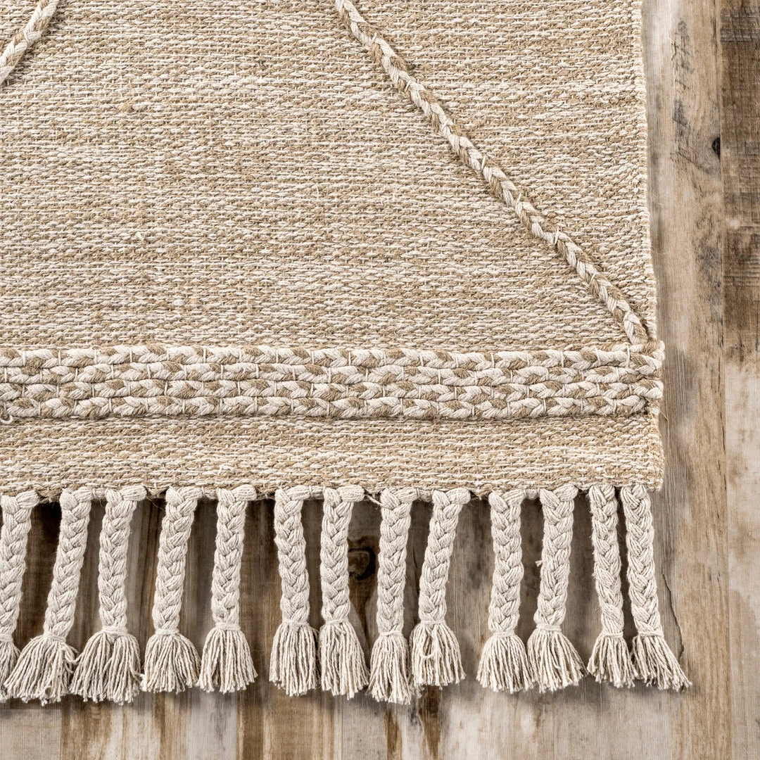 This beautiful neutral and natural floor covering will make a wonderful addition to your space. This rug features a casual trellis pattern, textured weave, and braided tassels. Hand woven from jute and cotton in India, this rug is durable and built to last.