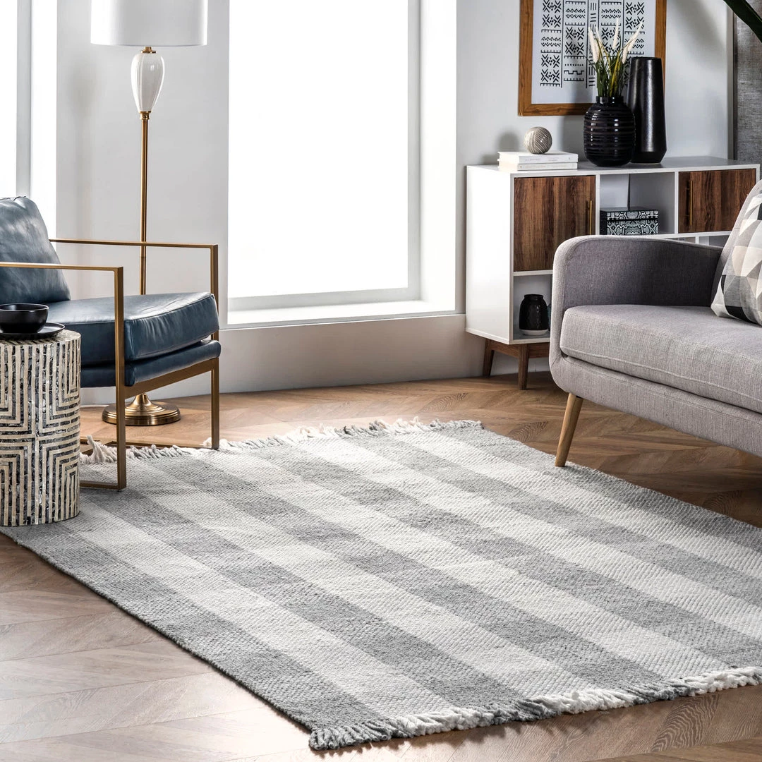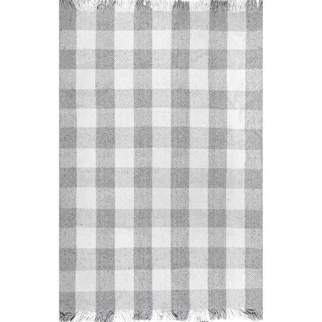 Add a touch of farmhouse country to your space with this plaid rug. Hand woven in India from soft synthetic fibers, this rug will resist stains while making any space feel like home.
