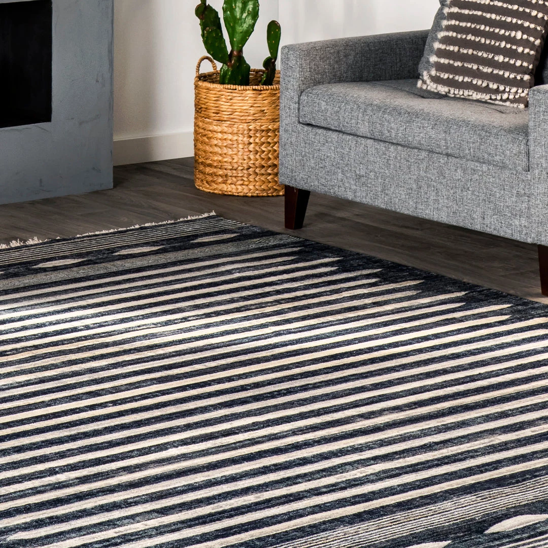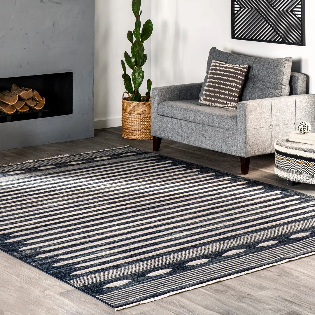 Your sanctuary is waiting! This modern striped area rug delivers a bold look to complete your space. With its warm and inviting hues, it is the perfect staple piece that will match any decor. Made from durable fibers, this rug is low- maintenance and is built to last. Enjoy every room of your home with our pet-friendly and easy-cleaning area rugs.