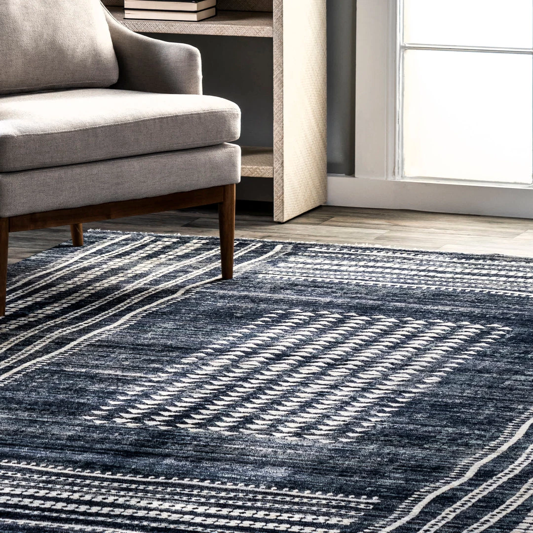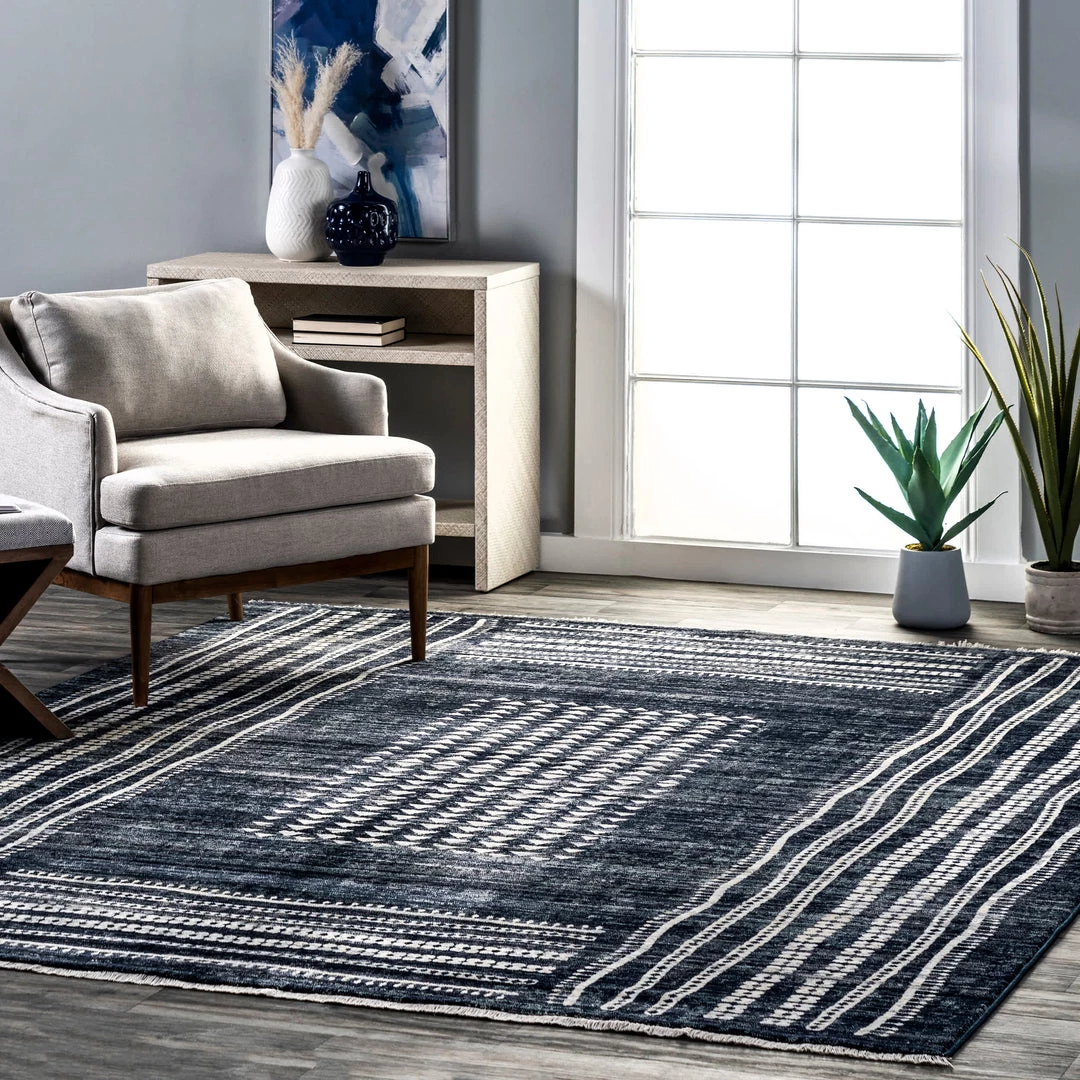 Enhance your living space with this show-stopping modern striped area rug. With intricate design details, this rug is the perfect way to add dimension and depth to any room. Made of durable fibers with gorgeous dainty tassels that line the ends. Kick back and relax with our pet-friendly and easy to clean area rugs.