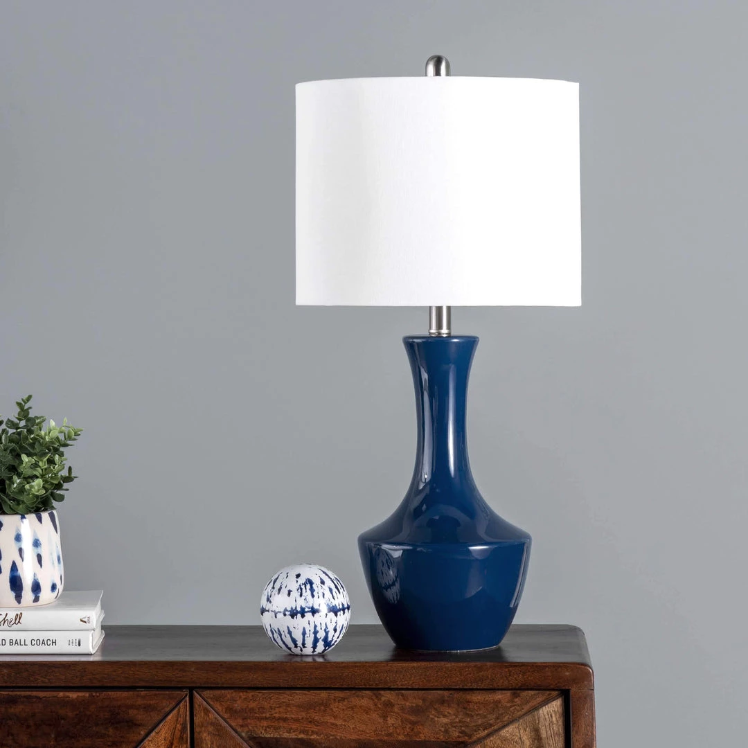 Warm and luminous, with a transitional urn shape base, this lamp will make a refreshing and stylish addition to your space. The cloth shade diffuses the light beautifully for ample illumination, and the ceramic body provides a sturdy base.