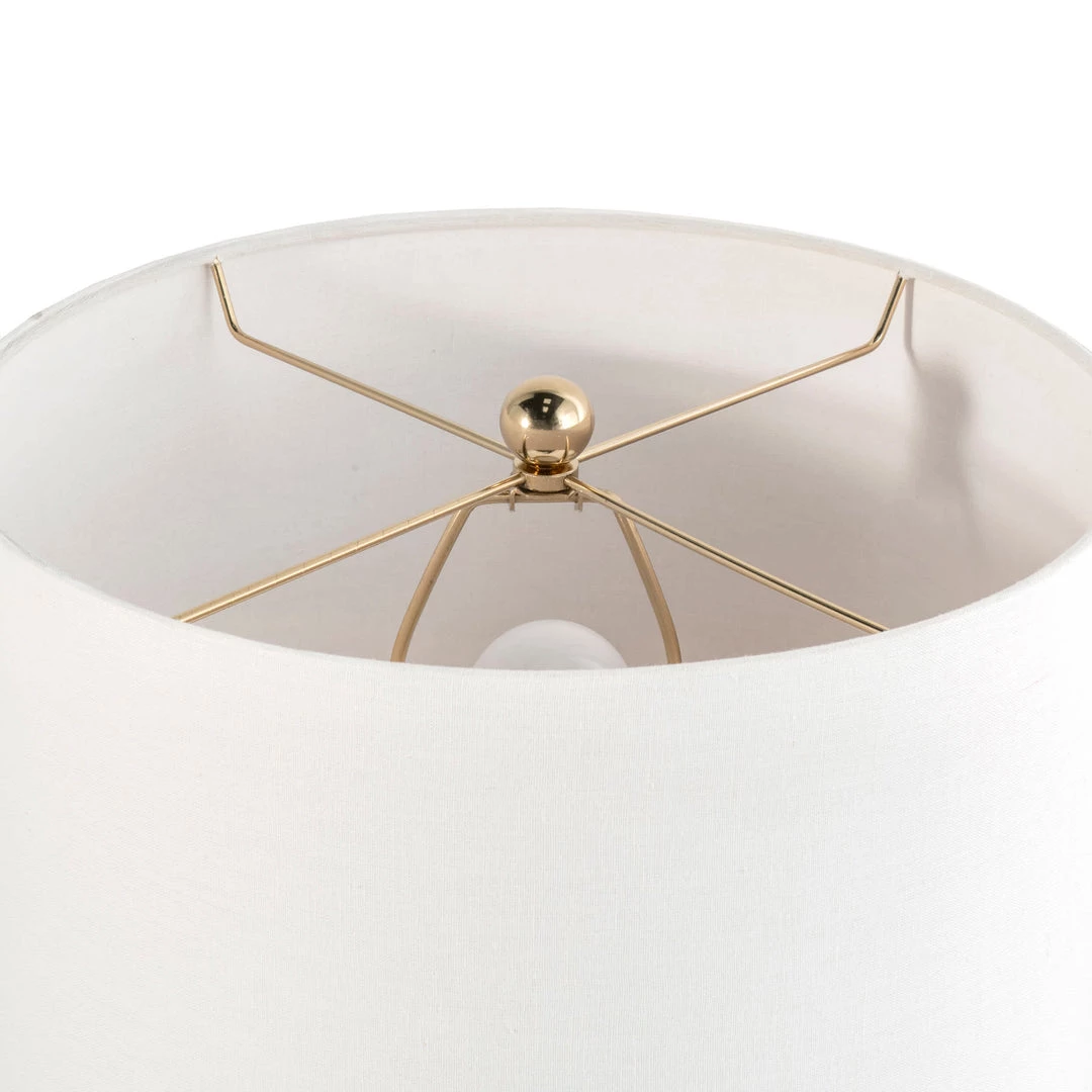 Let your room shine with the addition of this modern, 29-inch high, Glass & Iron table lamp. It has a Cotton shade that delivers bright ambient lighting. Add an vibrant flair to any room with its clear glass finish.