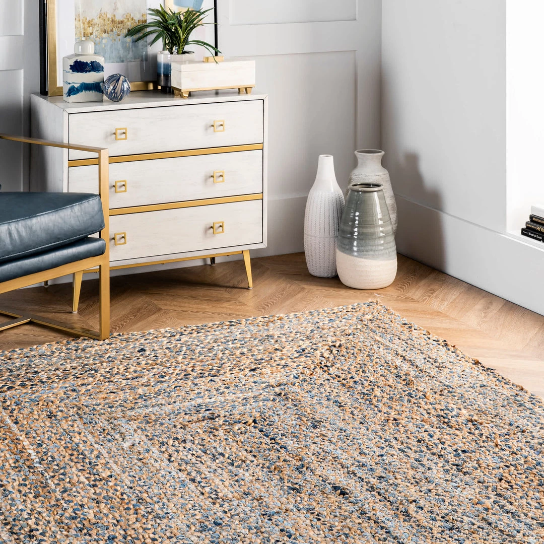 Looking for a simple yet stylish way to polish your space? This denim and jute rug is the perfect choice. Hand braided in India, this natural fiber rug will add a casual yet elegant touch to your space.