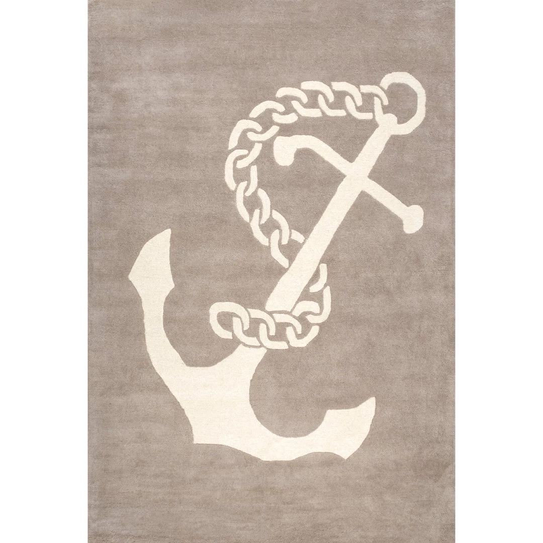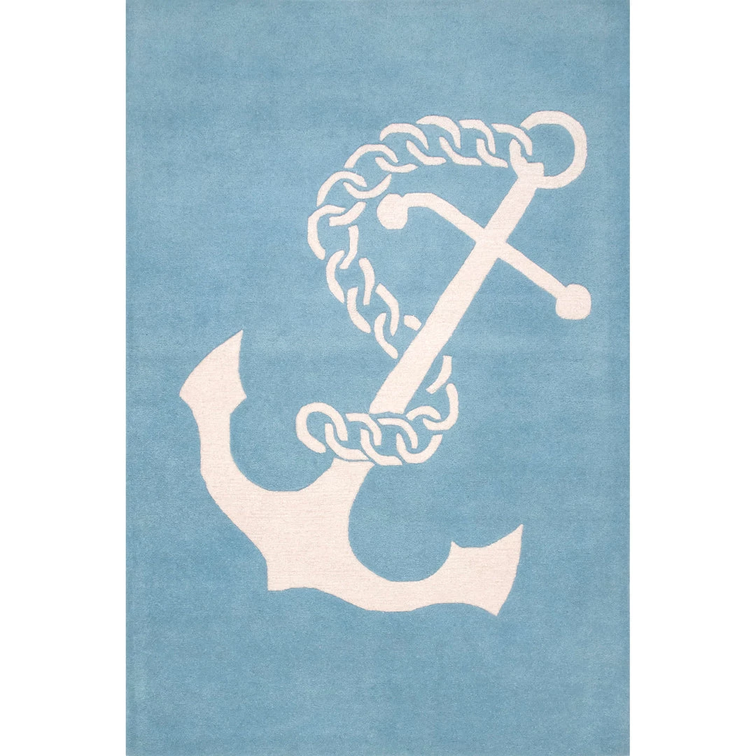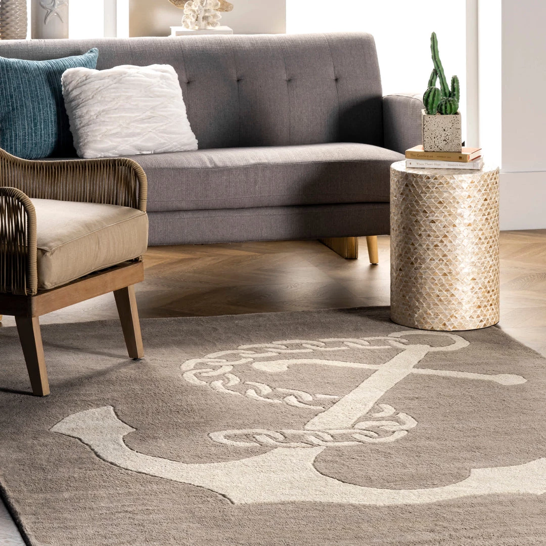 The perfect way to incorporate the peaceful feeling of the sea into your home is with this anchor area rug. Hand Tufted from wool in India this rug will surely standout.