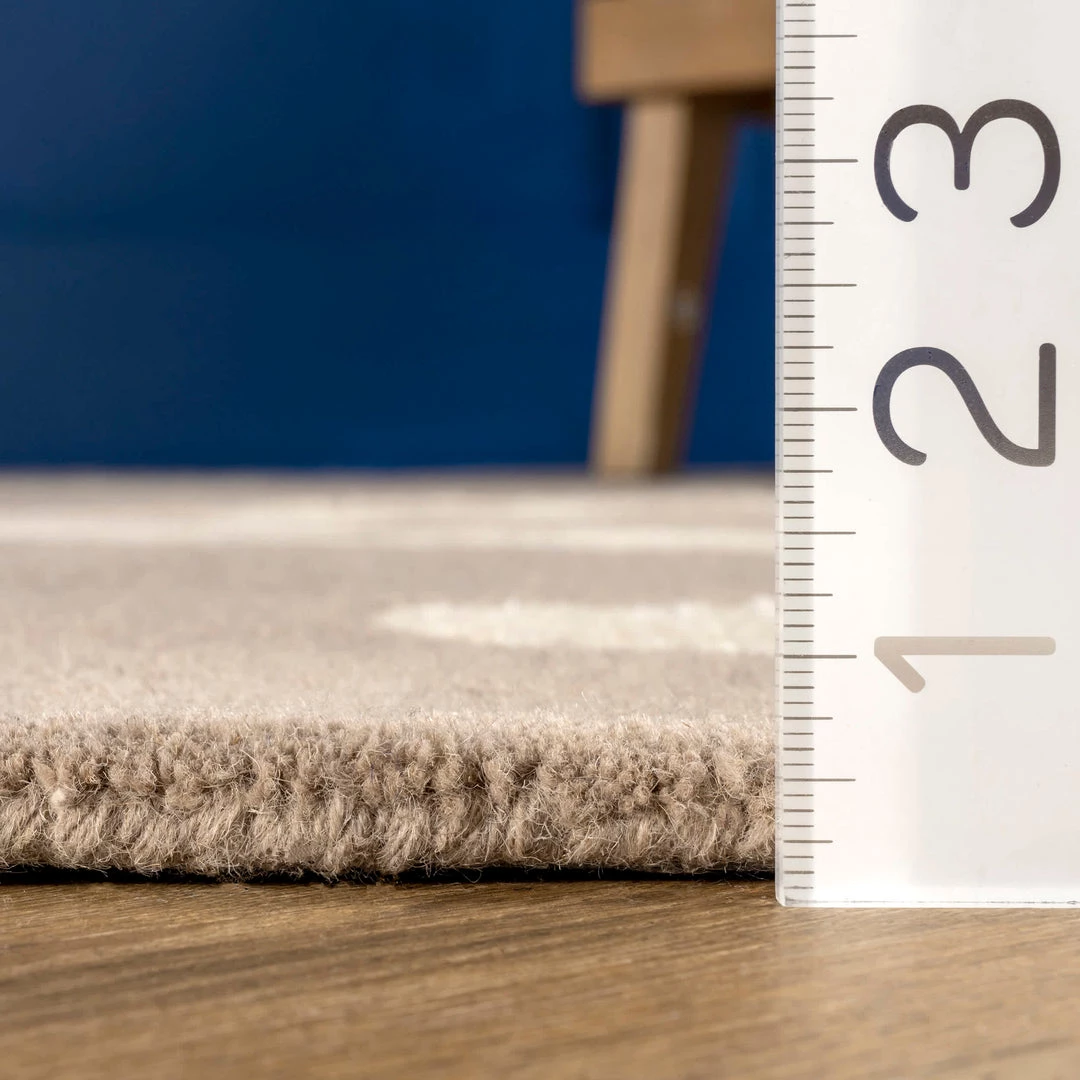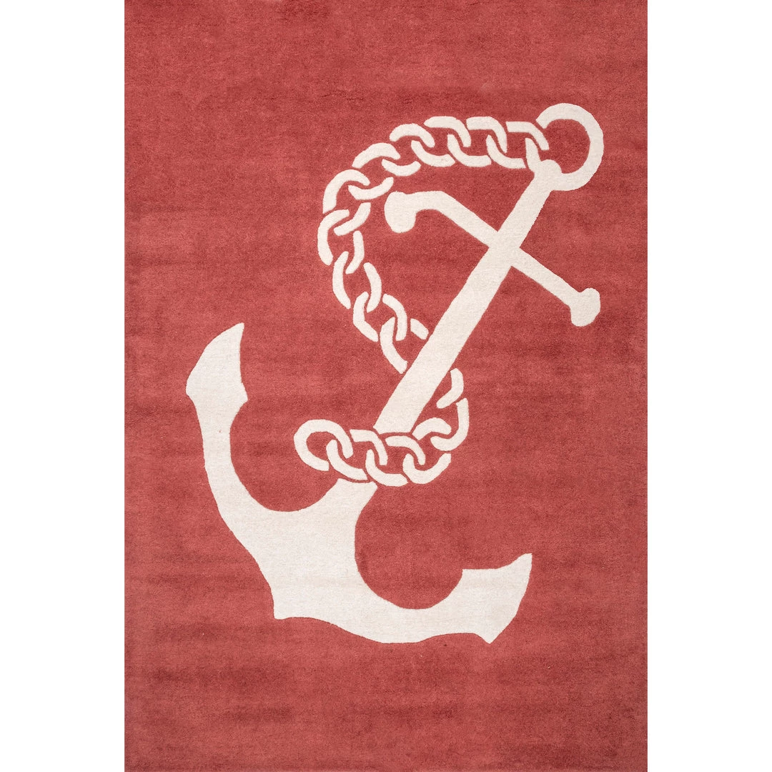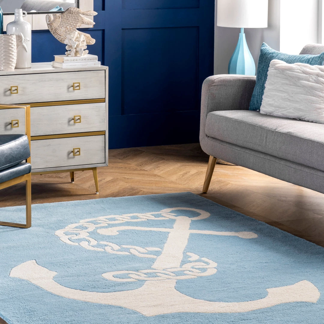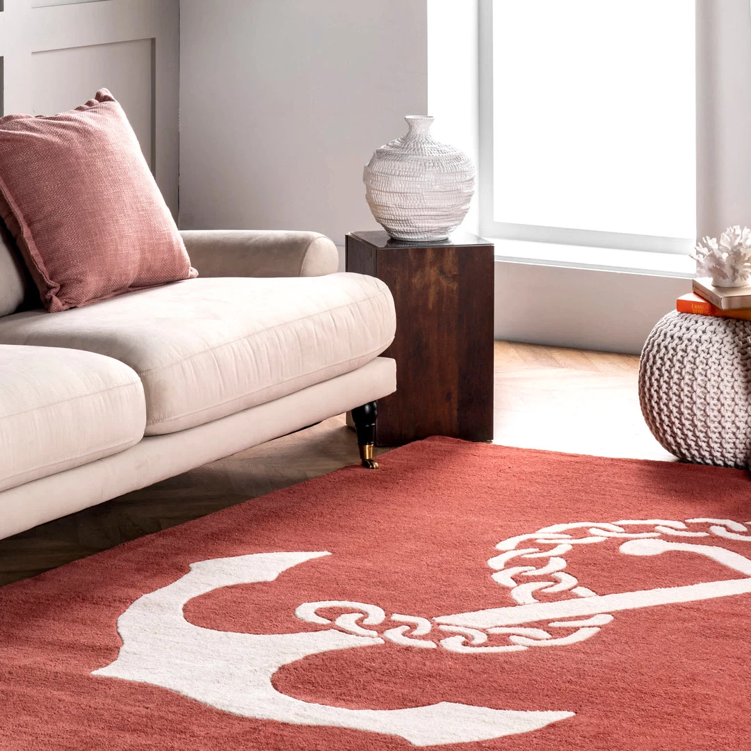The perfect way to incorporate the peaceful feeling of the sea into your home is with this anchor area rug. Hand Tufted from wool in India this rug will surely standout.