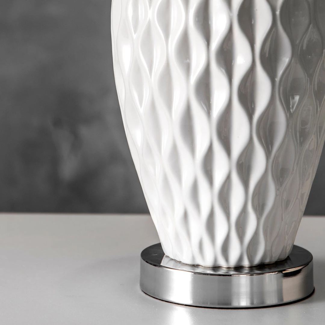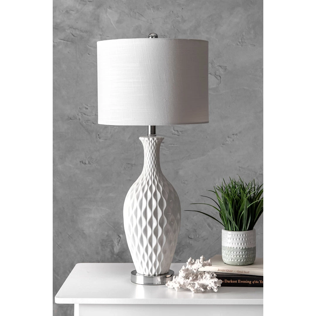 Let your room shine with the addition of this modern, 28-inch high, Ceramic lamp. Its linen shade delivers ambient lighting to an area. Add a vibrant flair to any room with its Ivory finish.