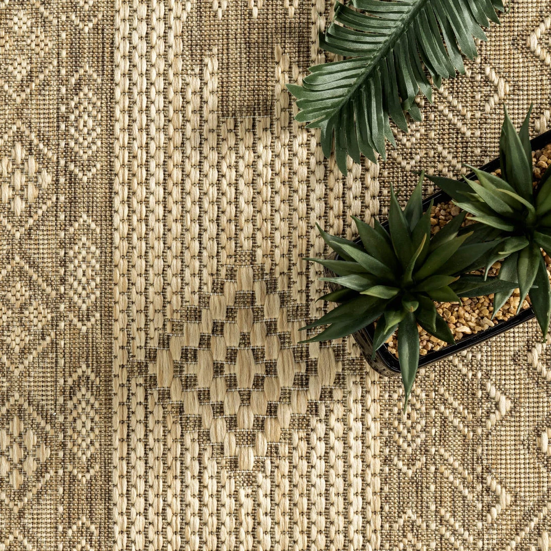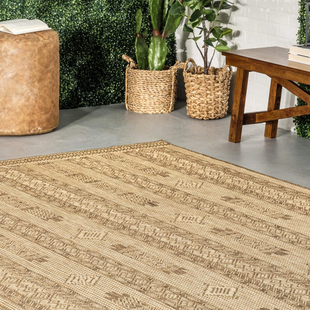 Put your space on a whole new level with this versatile, durable indoor/outdoor rug. With its bohemian tribal design, this new addition can transform any space into a cozy retreat. Made to endure the elements, these rugs resist staining, fade or mold in damp conditions.