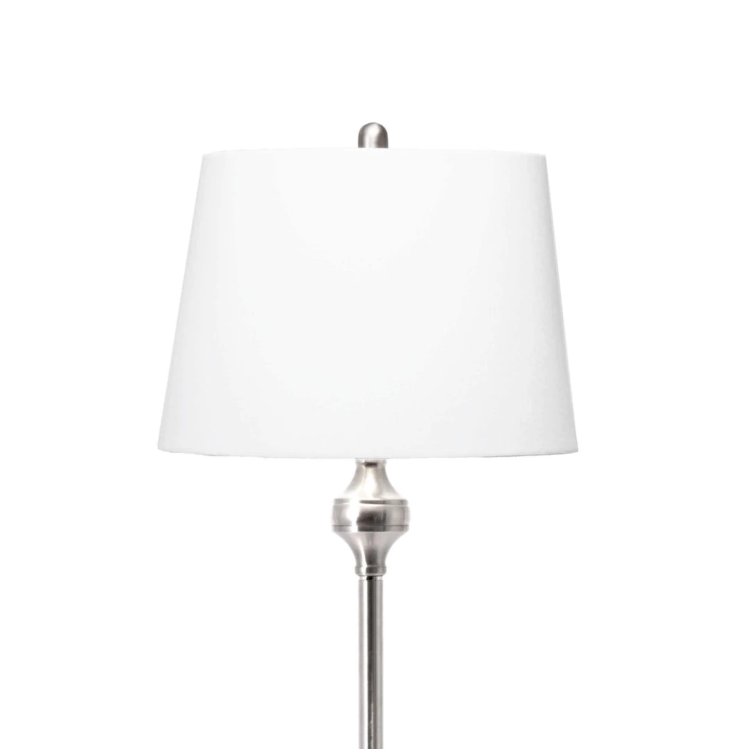 Warm and luminous, with a traditional style base, this floor lamp will make a refreshing and stylish addition to your space. The cloth shade diffuses the light beautifully for ample illumination, and the metal body provides a sturdy base.