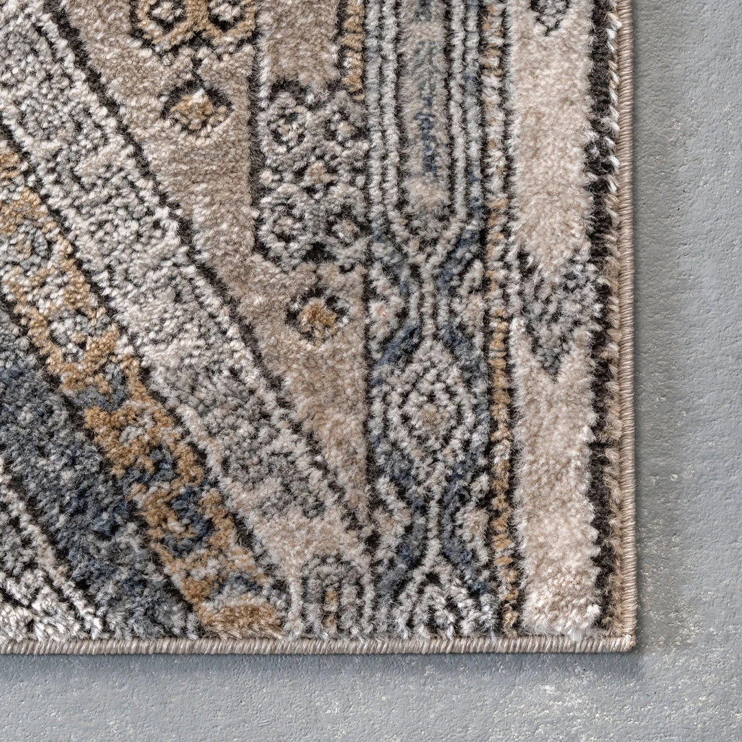 Unusual and eye-catching with a tribal feel. This area rug will elevate your space with its beautiful pattern and smooth texture. Machine made in Turkey of soft, synthetic materials prized for their durability and ease of care.