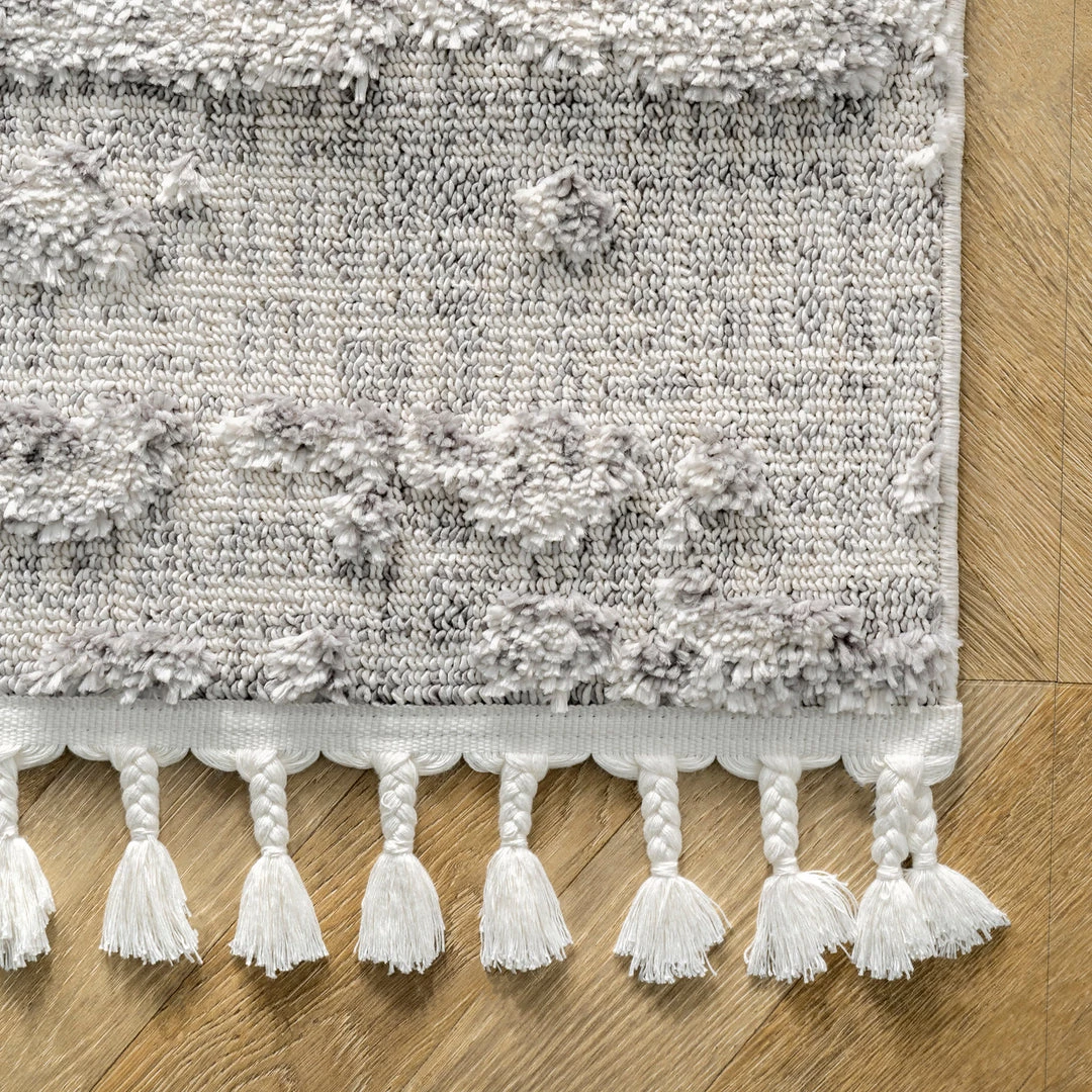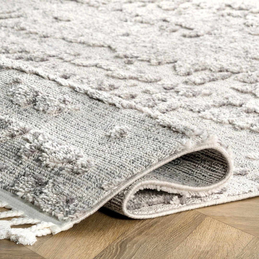 This dynamically textured pattern with highs and lows will add a touch of contemporary flair to your space. Machine made in Turkey of silky soft polyester, each piece offers a neutral color palette that will fit seamlessly in virtually any decor scheme.