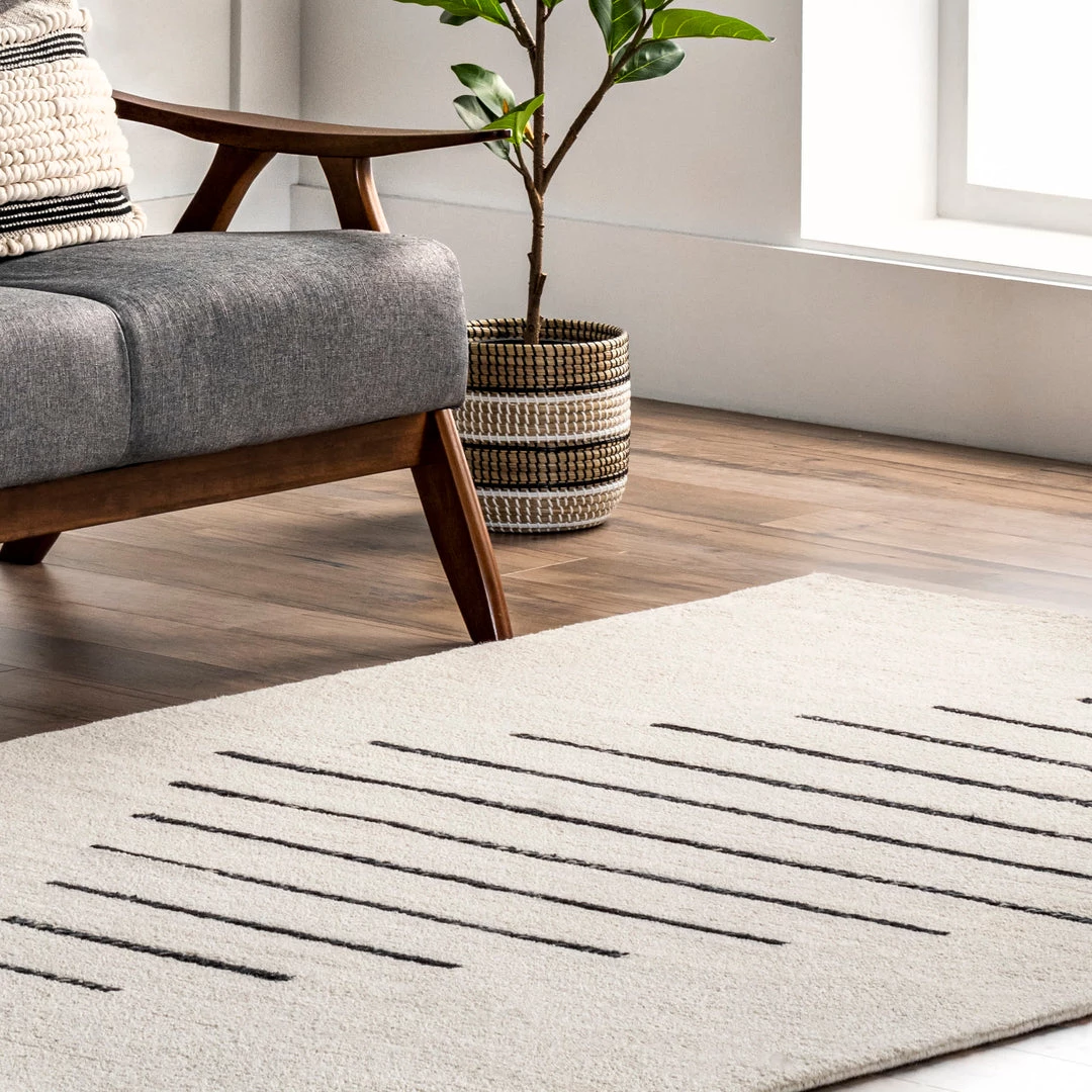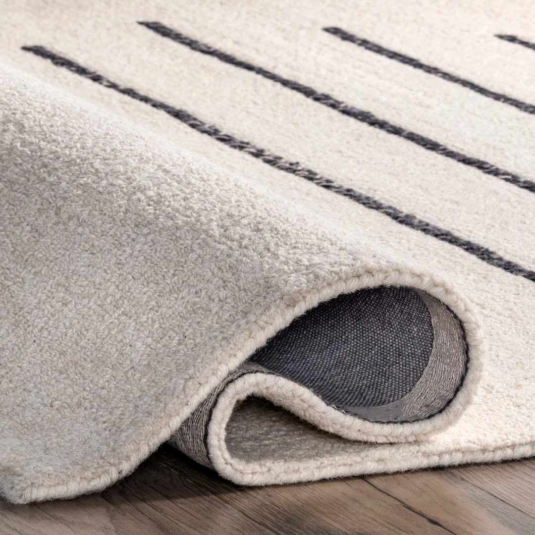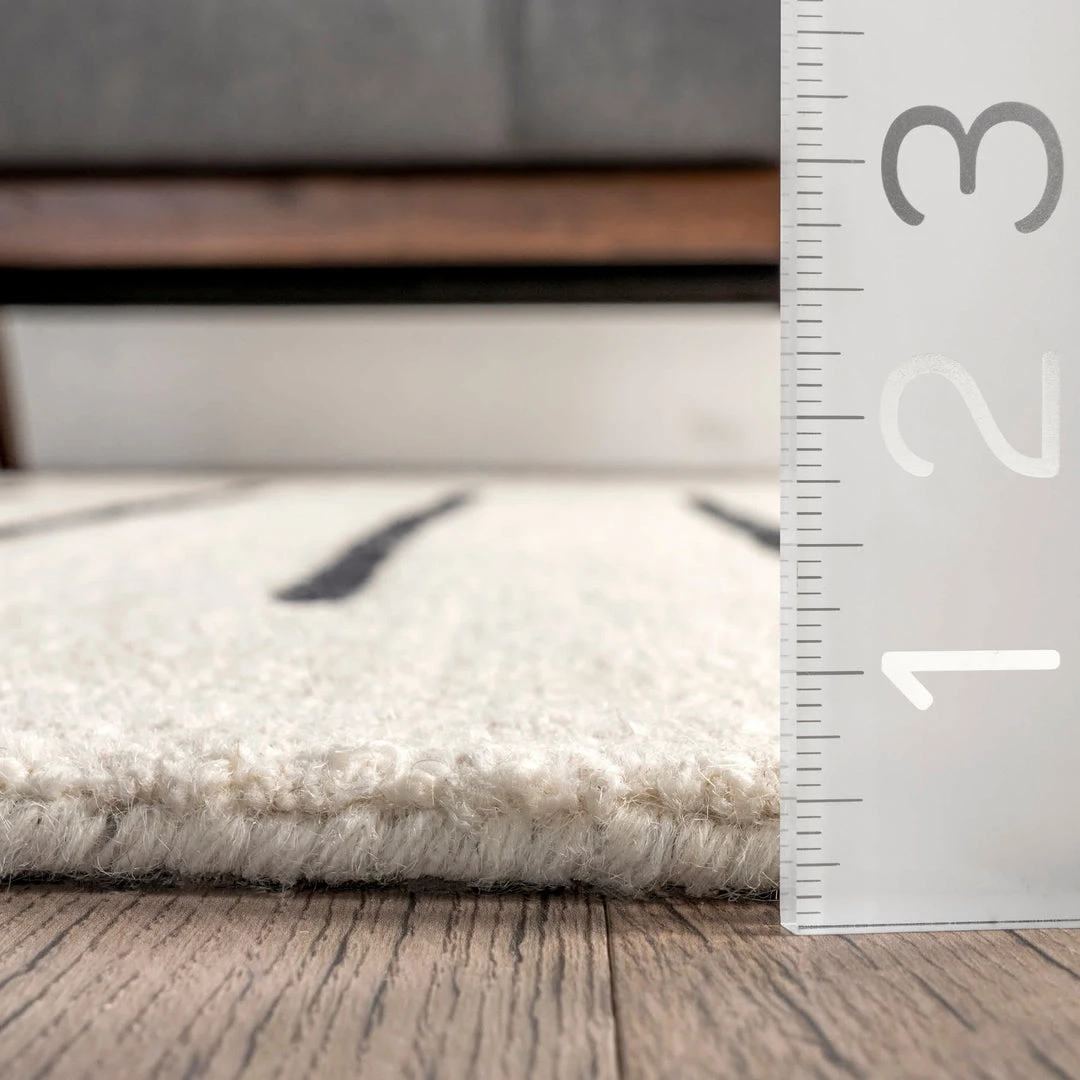 Handcrafted with warm wool and soft cotton yarns, this rug features a soft texture and contemporary minimalistic style. Clean, repeating lines form a diamond pattern that gives the rug character. This rug will make any space feel like home while pairing seamlessly with almost any decor scheme.
