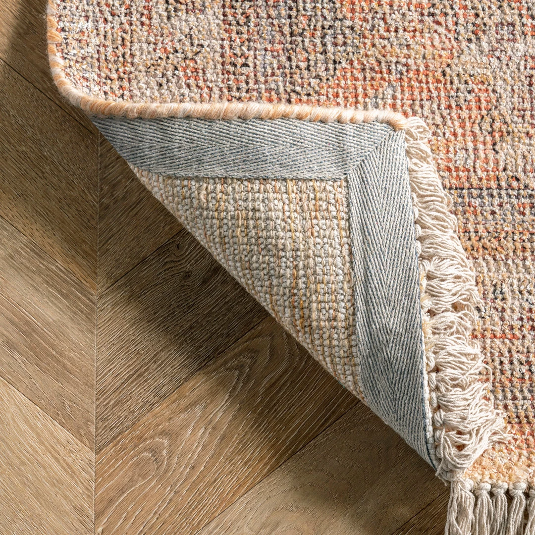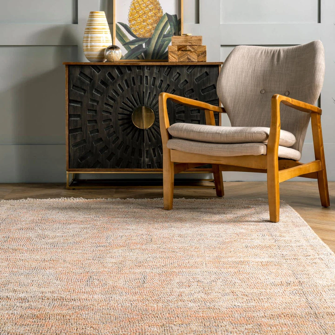 This high quality, handmade rug is made from a blend of natural fibers and synthetics. Refreshingly lightweight cotton and viscose mix with warm wool to complete a luxuriously soft texture underfoot.