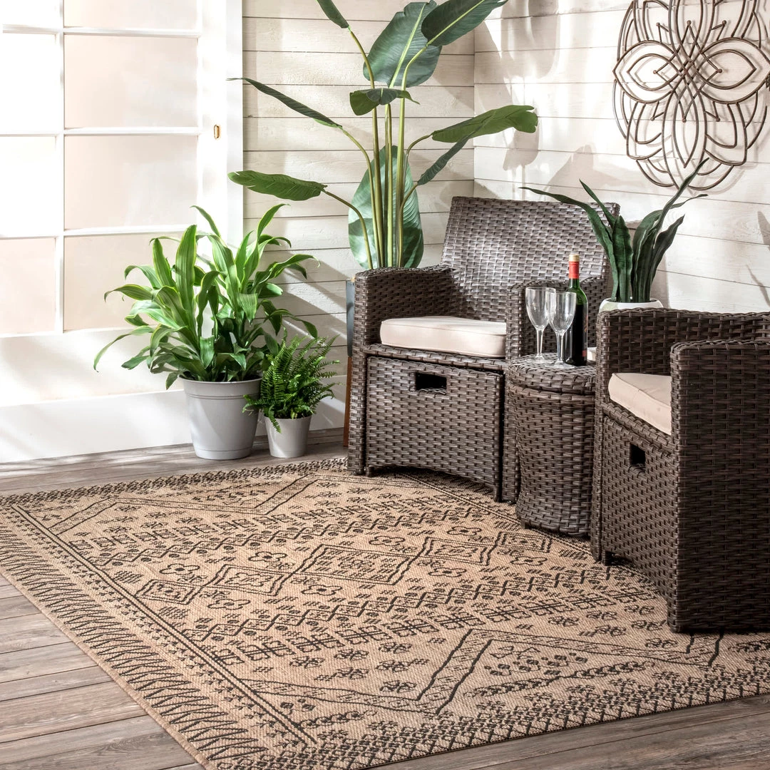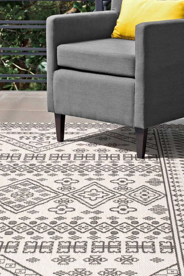 This rug is machine made from 100% polypropylene and built to last in outdoor conditions. It will help complete and add comfort to any space whether you choose to place it inside or outside your home. Choose from any of the unique colorways to best match existing decor.