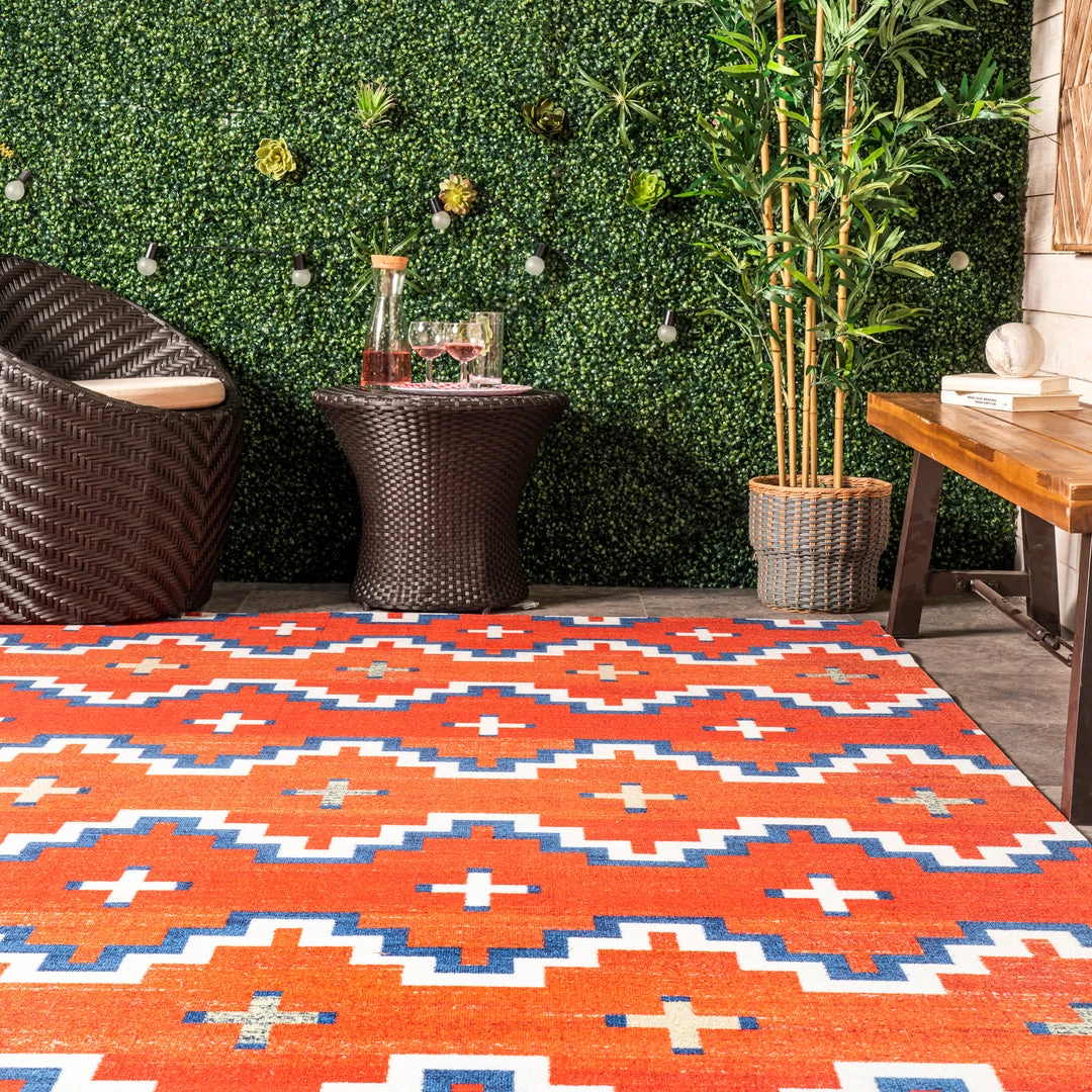 Elevate your space inside or outside your home with this unique Aztec pattern. Made from durable synthetic fibers this rug is built to last and adds a touch of luxury wherever it is placed.