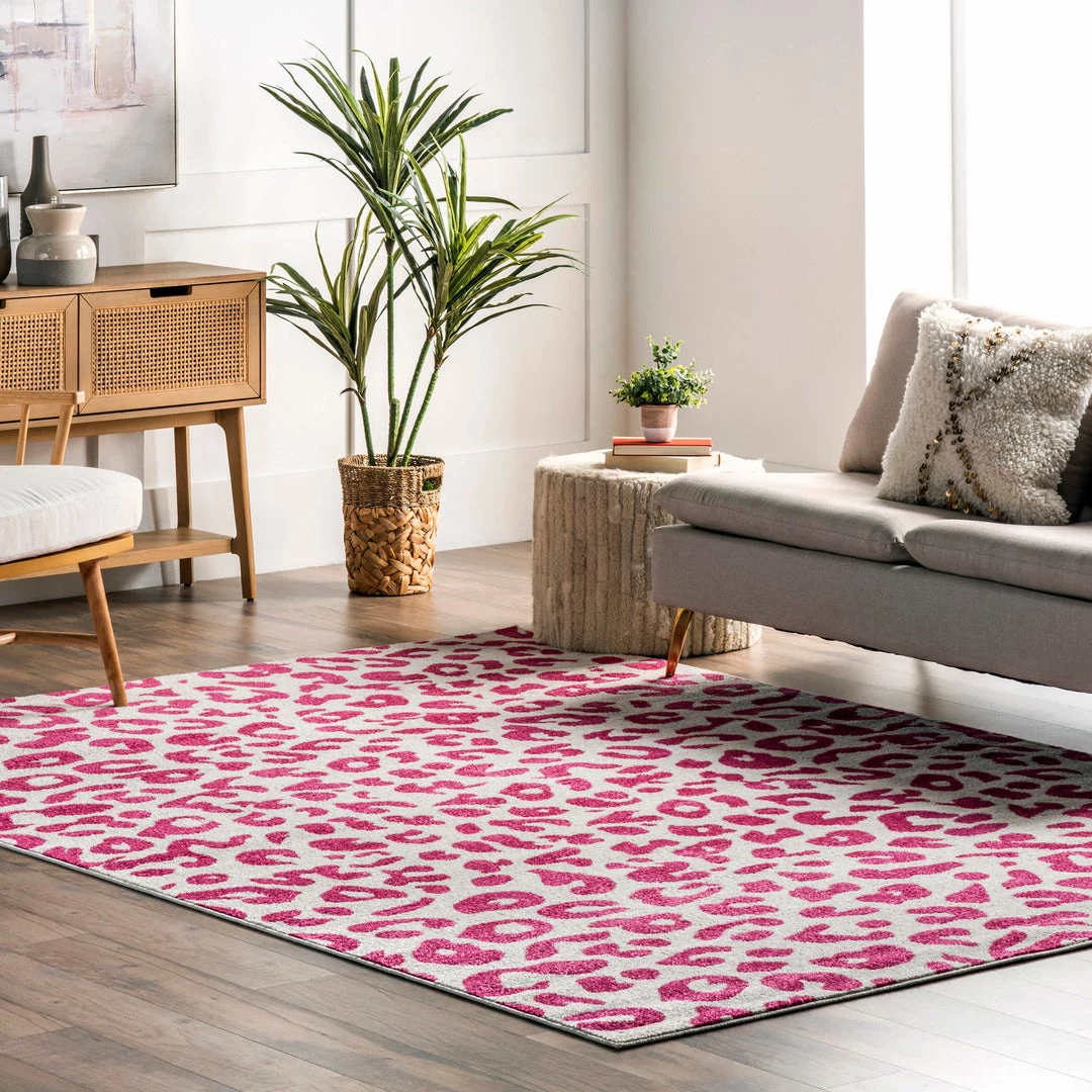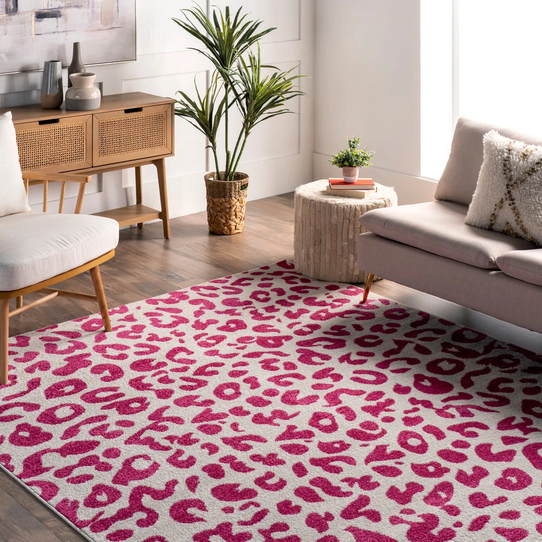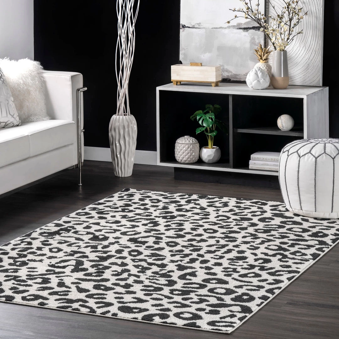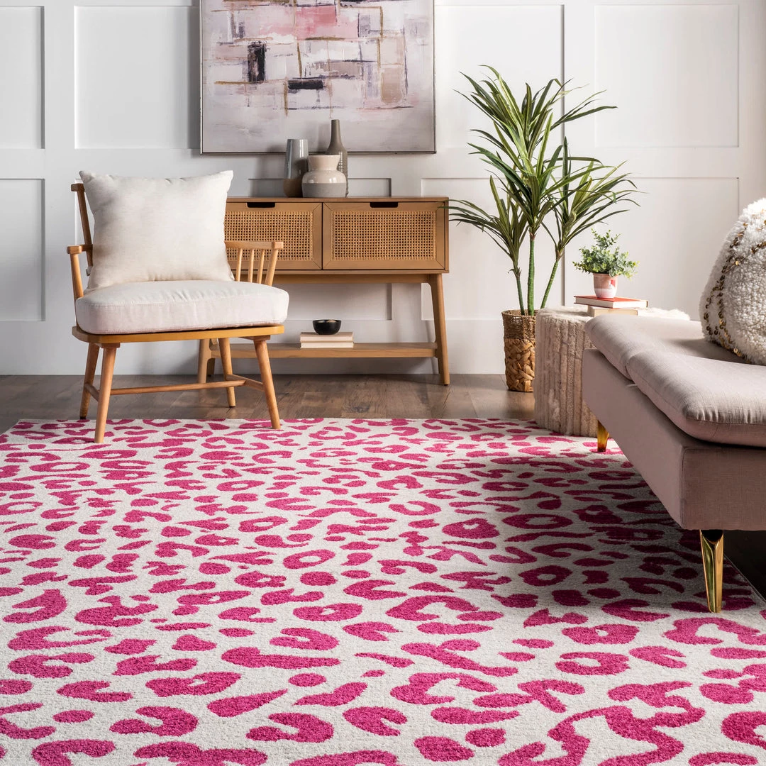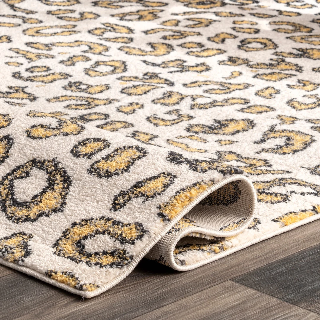 Take a walk on the wild side with this strikingly designed leopard print rug. Create a cohesive look in your living room or bedroom by pairing printed pillows with this rug. Glass topped tables and gold furnishings add an elegant touch to your space.