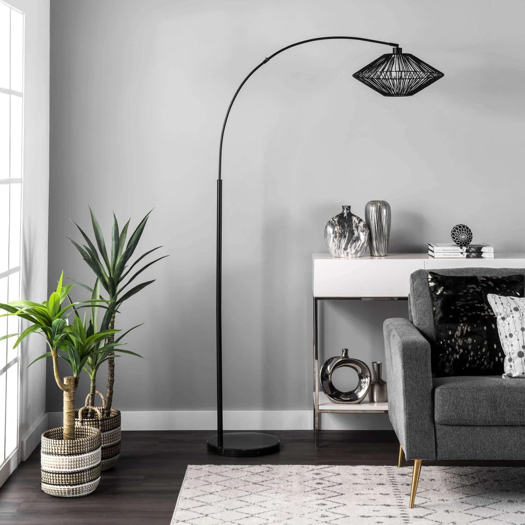 Illuminate your space with a touch of contemporary style. Warm and luminous, with a beautiful arched modern metal base, this floor lamp will make a refreshing and stylish addition to your space.
