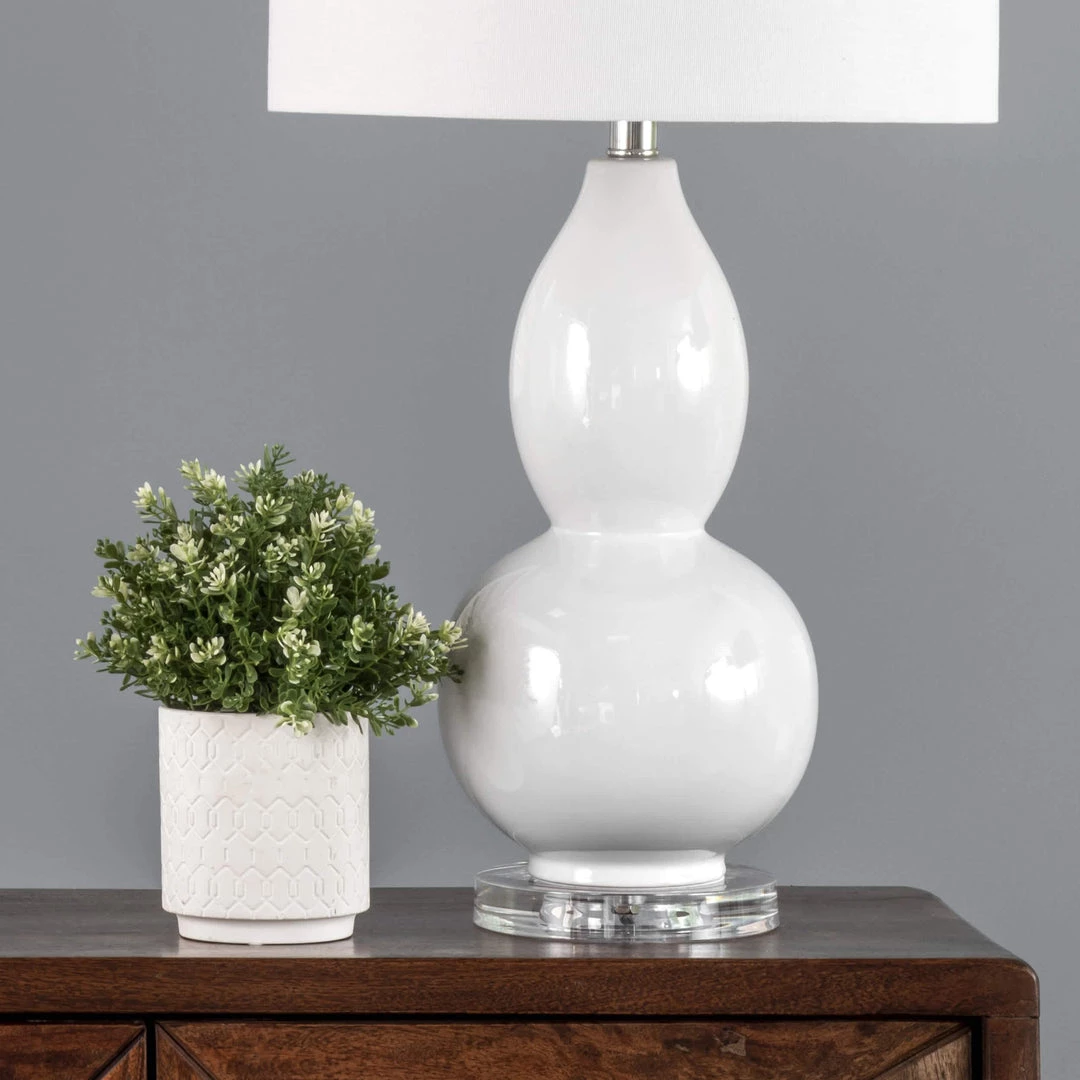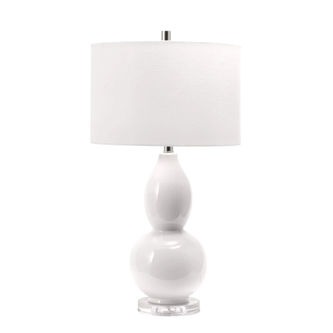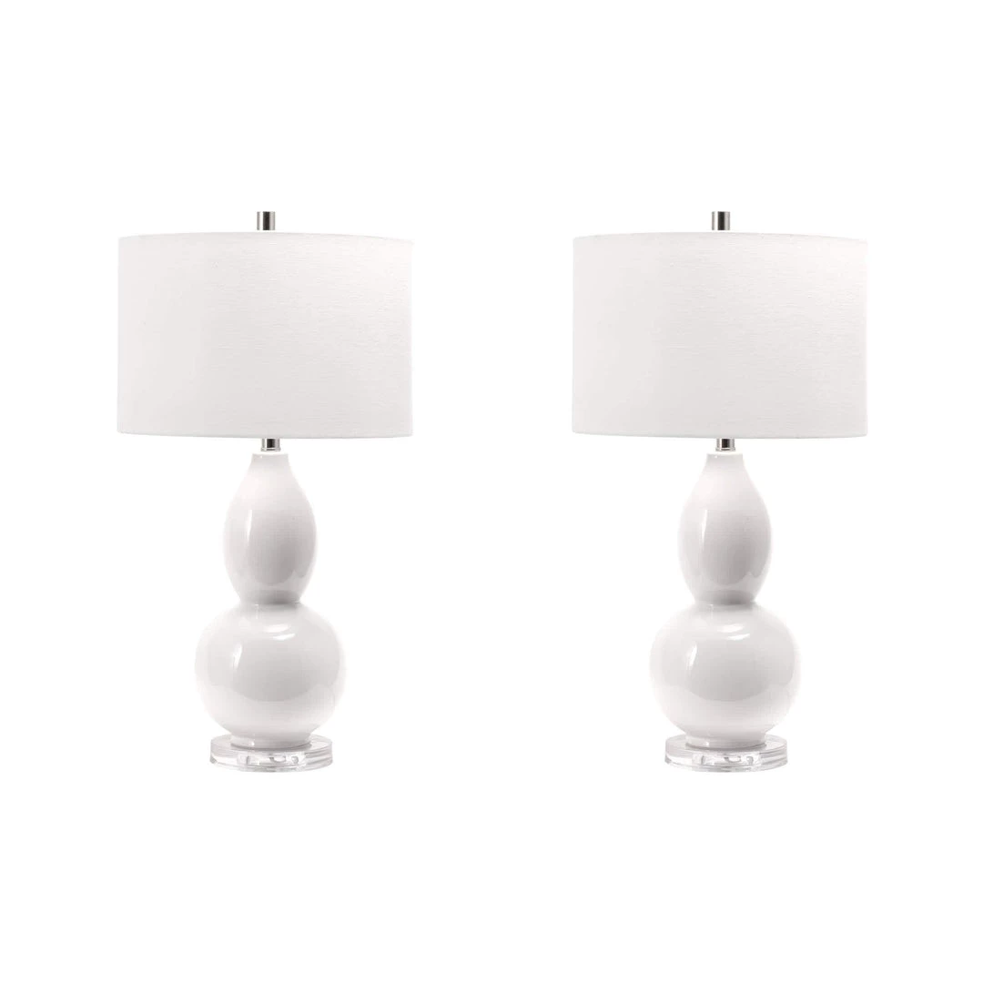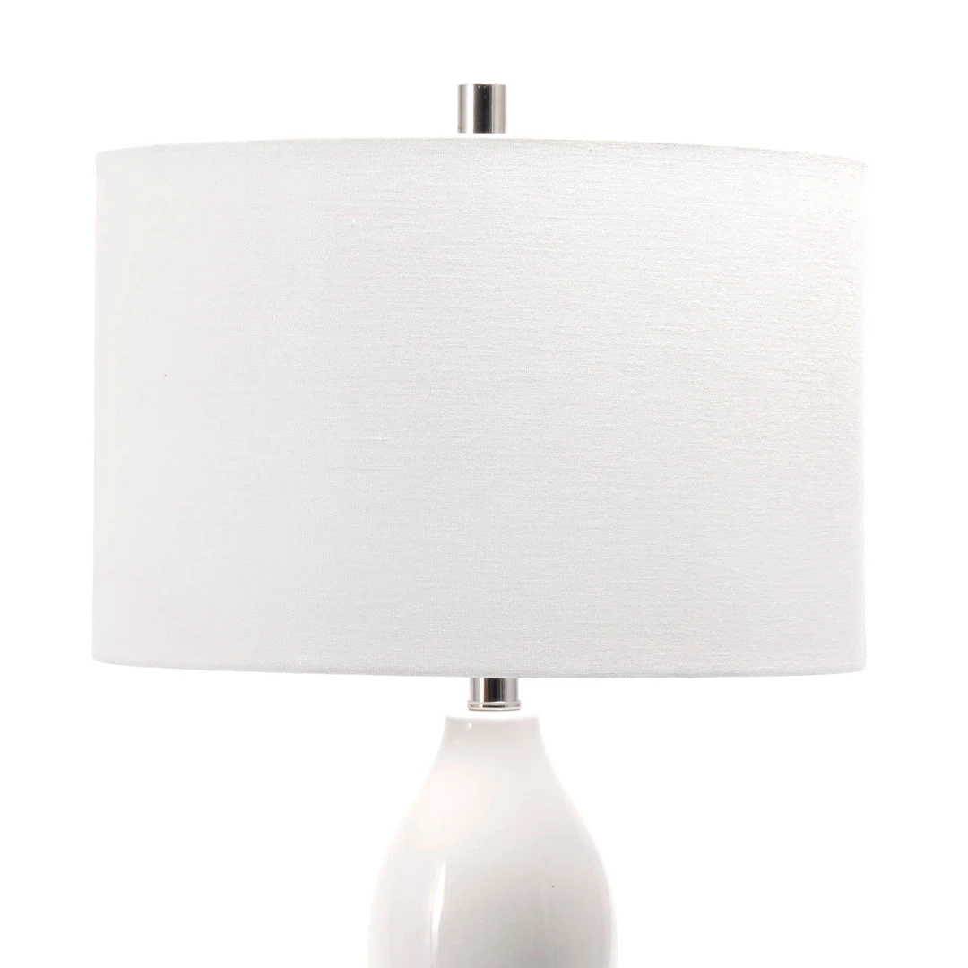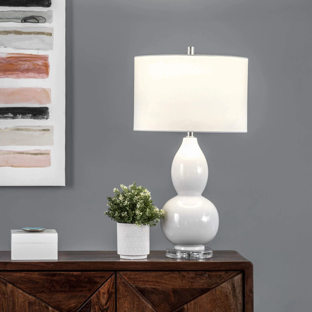 Let your room shine with the addition of this contemporary, 29-inch high, ceramic table lamp. It has a fabric shade that delivers ambient lighting and will add a vibrant flair to any room.