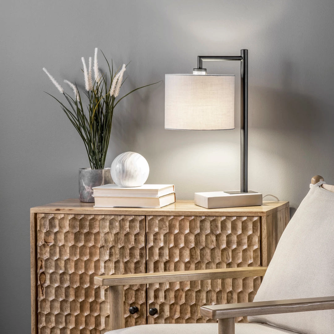 Warm and luminous, with a contemporary desk base, this lamp will make a refreshing and stylish addition to your space. The cloth shade diffuses the light beautifully for ample illumination, and the concrete body provides a sturdy base.