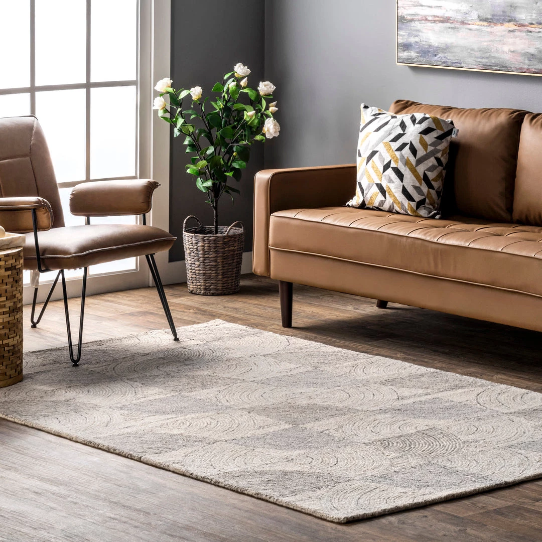 This hand-tufted wool rug with modern geometric design will add comfort and warmth to any contemporary home.