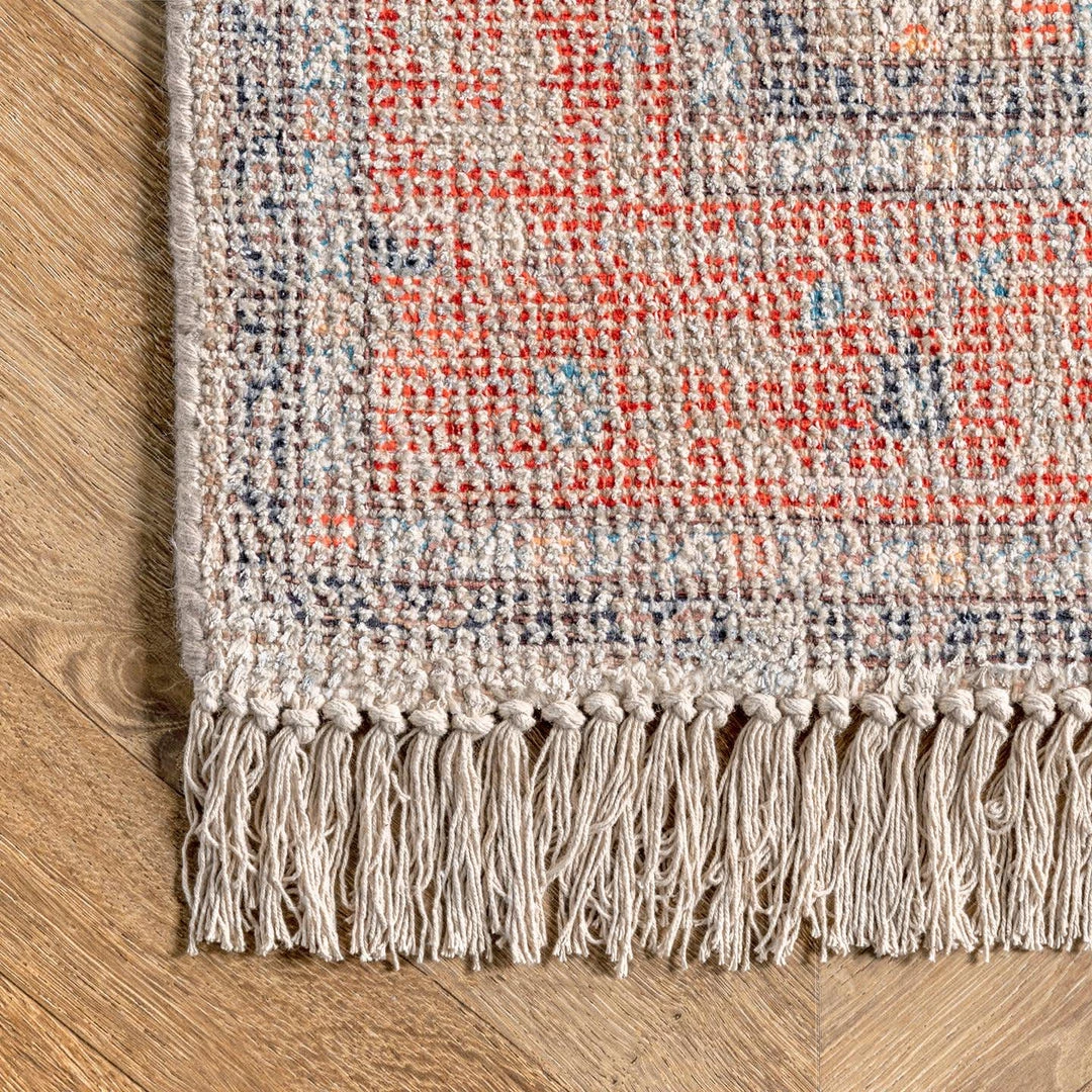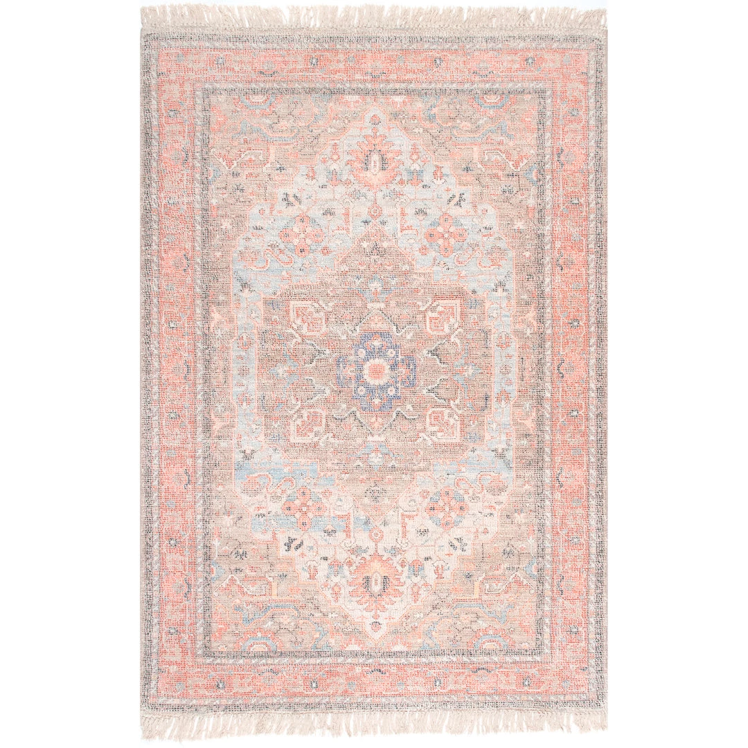 This high quality, handmade rug is made from a blend of natural fibers and synthetics. Refreshingly lightweight cotton and viscose mix with warm wool to complete a luxuriously soft texture underfoot. The floral medallion design pops with a beautiful color palette. You are sure to fall in love with this floor covering.