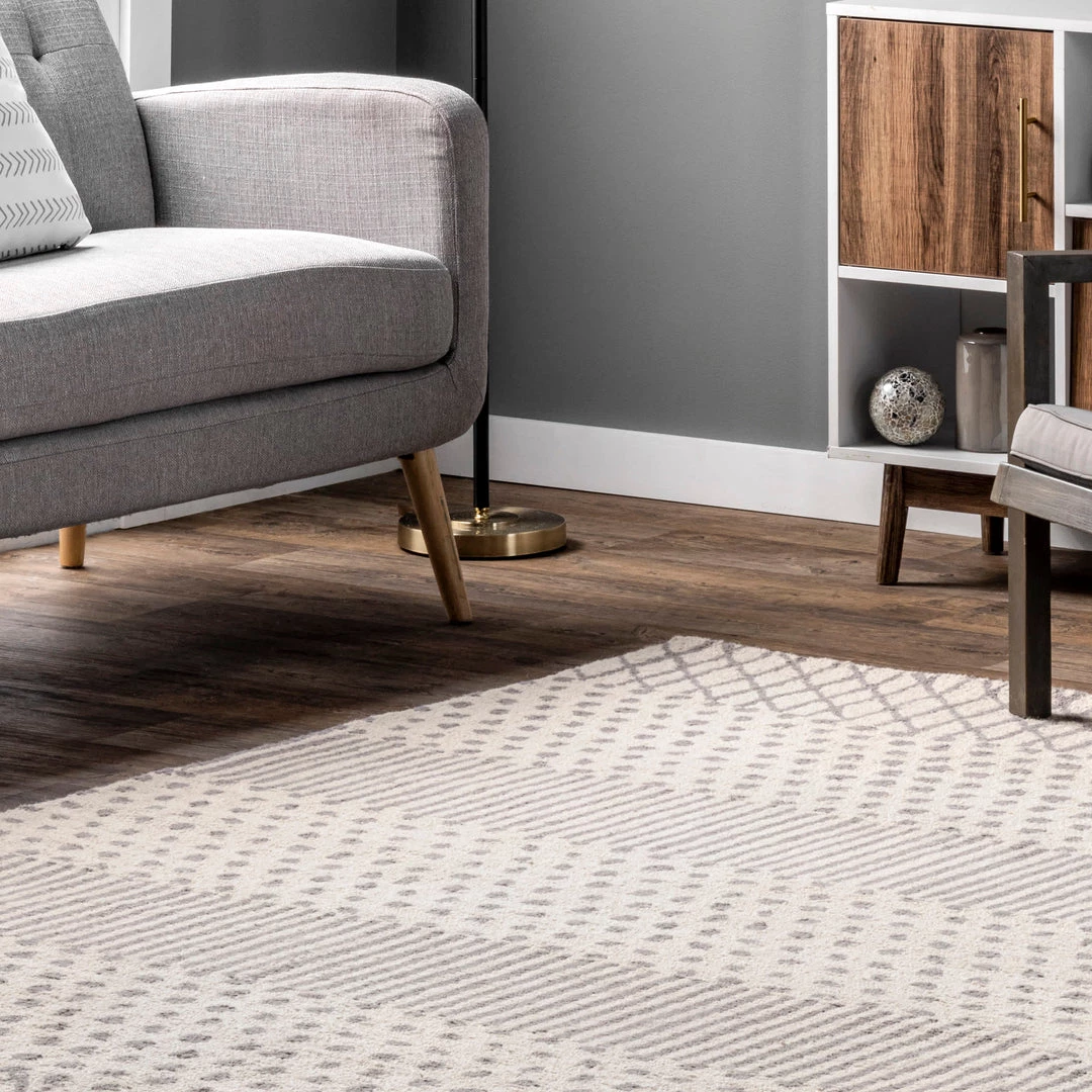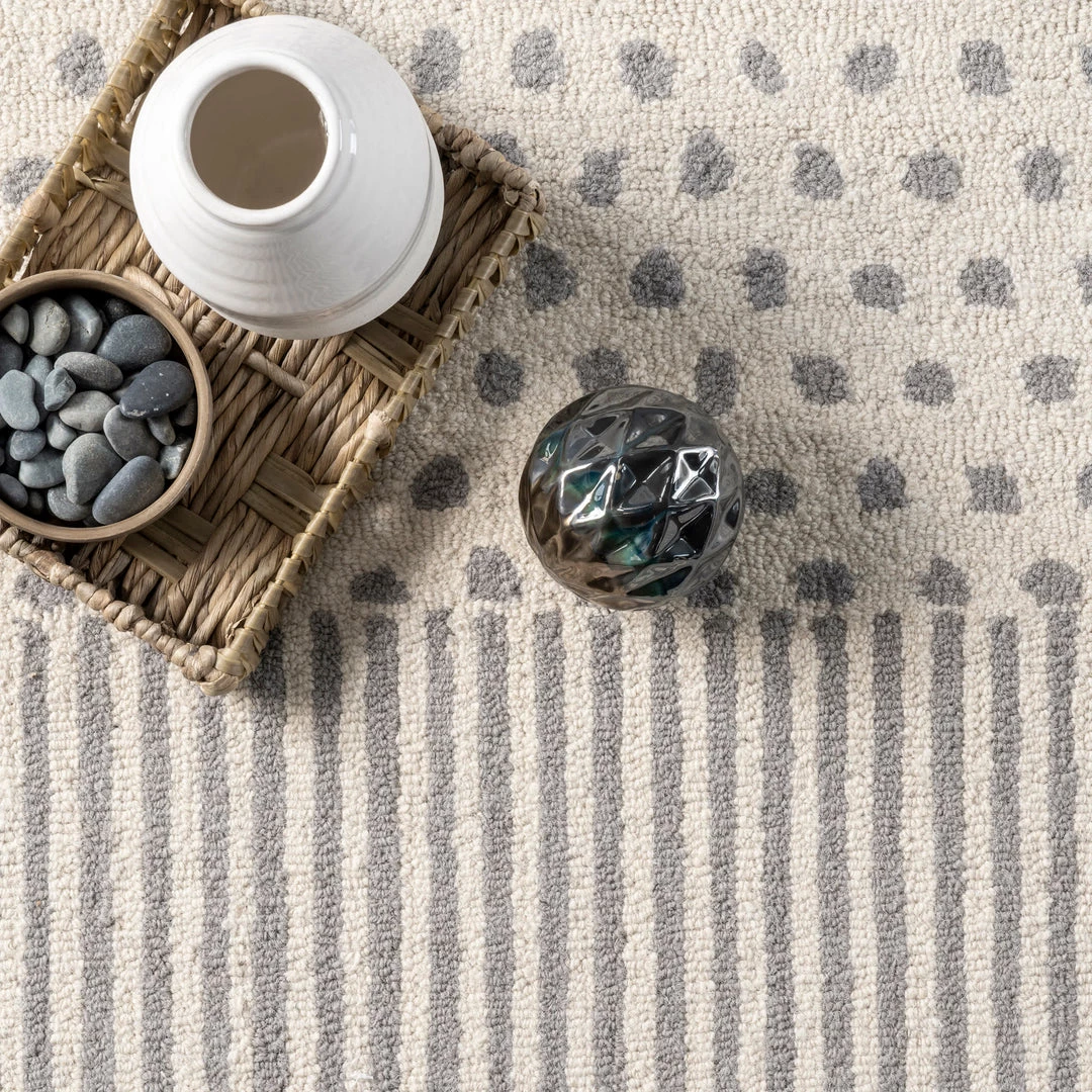 Put a fresh spin on your floors with this hand tufted wool rug. The unique geometric pattern and neutral colorway will make a perfect addition to contemporary or traditional decor.