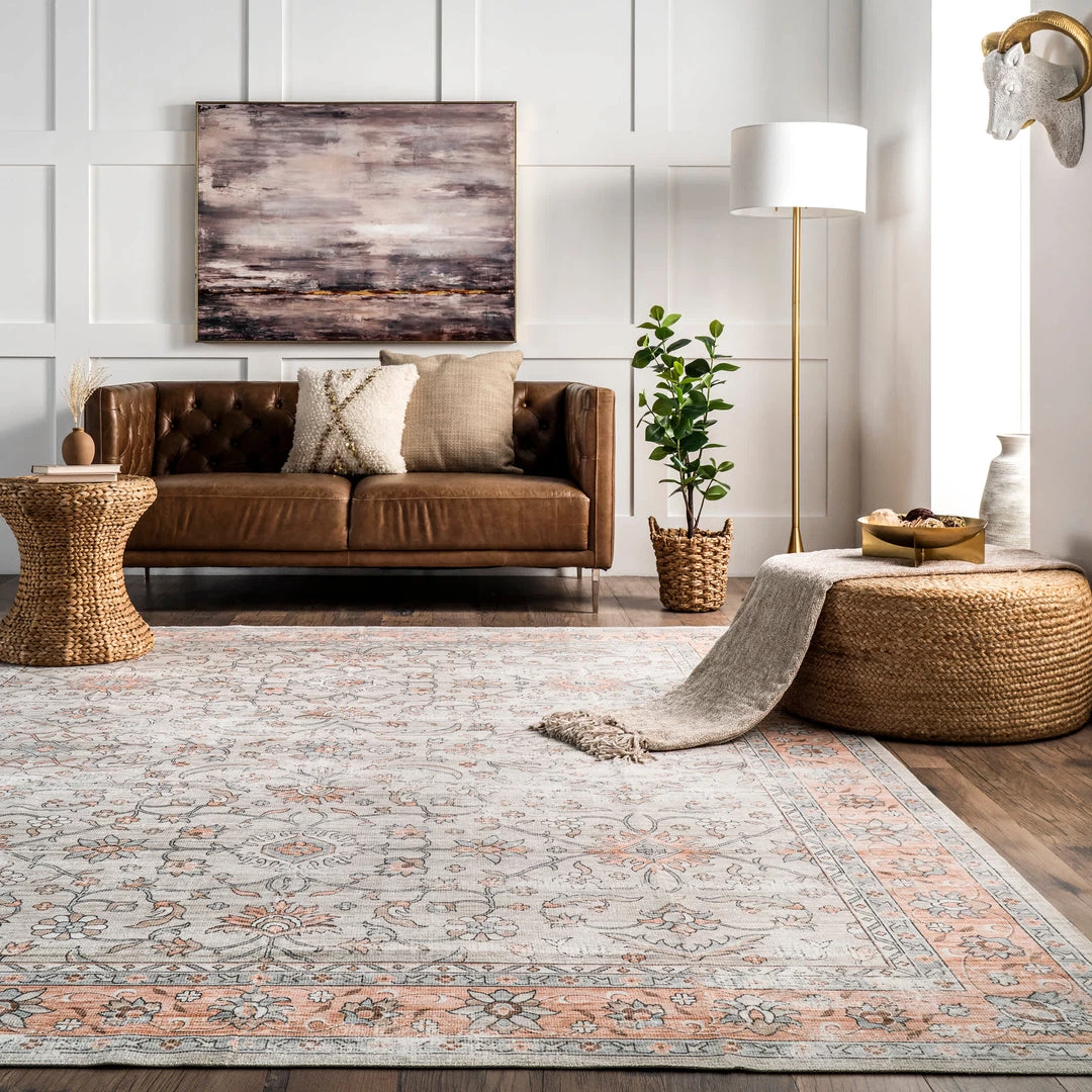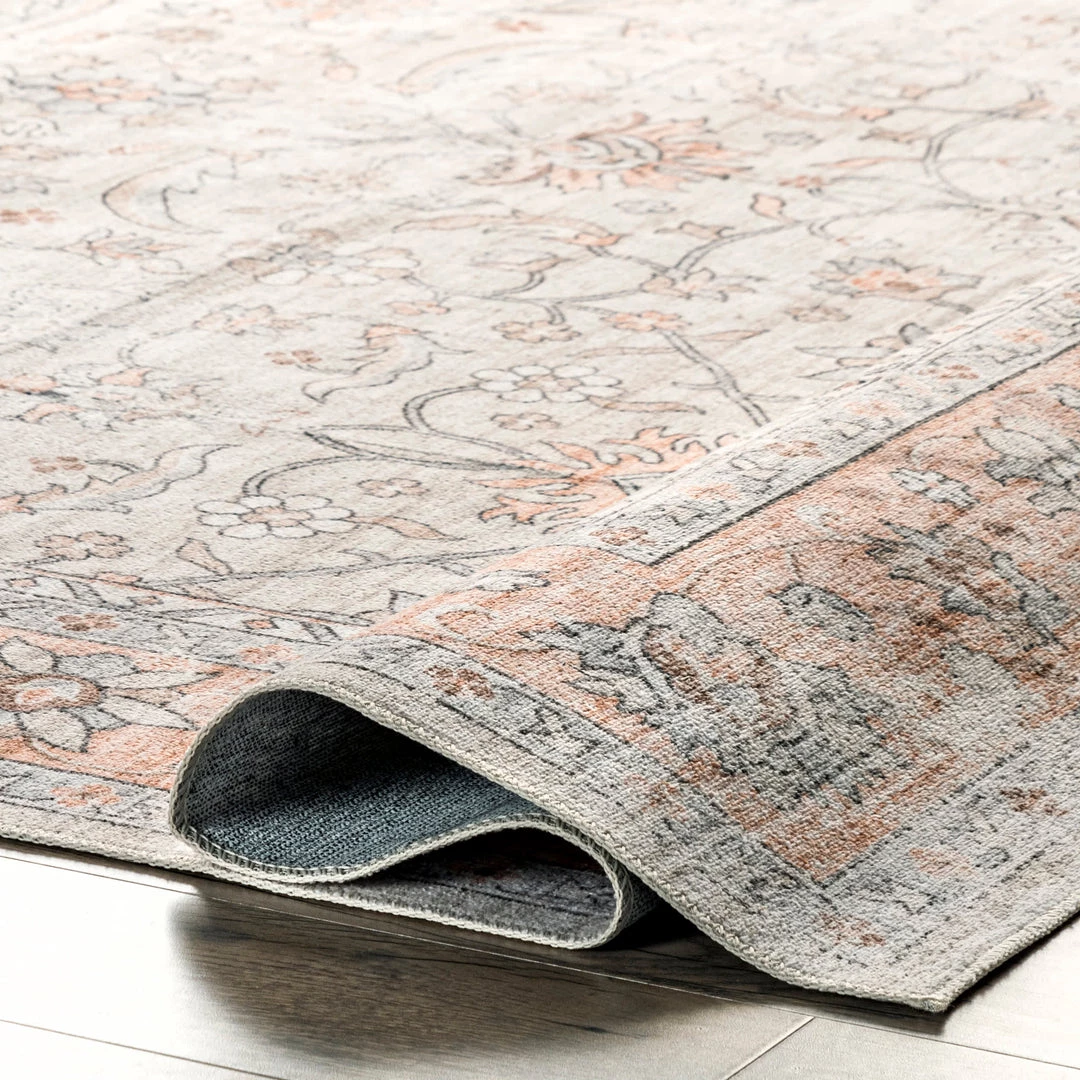 Complete your space with our faded floral machine washable area rug. Made from sustainably-sourced, premium recycled synthetic fibers, this washable area rug is made to withstand regular foot traffic. Our machine-washable collection is functional and stylish to keep up with your busy lifestyle. Simply roll your rug up, throw it in the washing machine, and you’re done! Elevate your space with our pet-friendly and easy to clean area rugs.