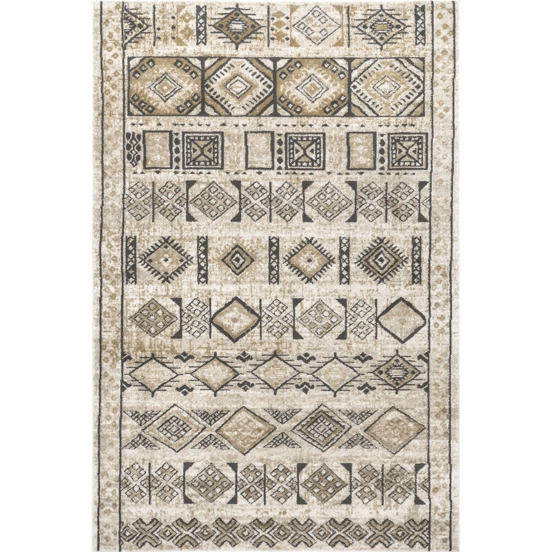 Unusual and eye-catching with a tribal feel. This area rug will elevate your space with its beautiful pattern and smooth texture. Machine made in Turkey of soft, synthetic materials prized for their durability and ease of care.