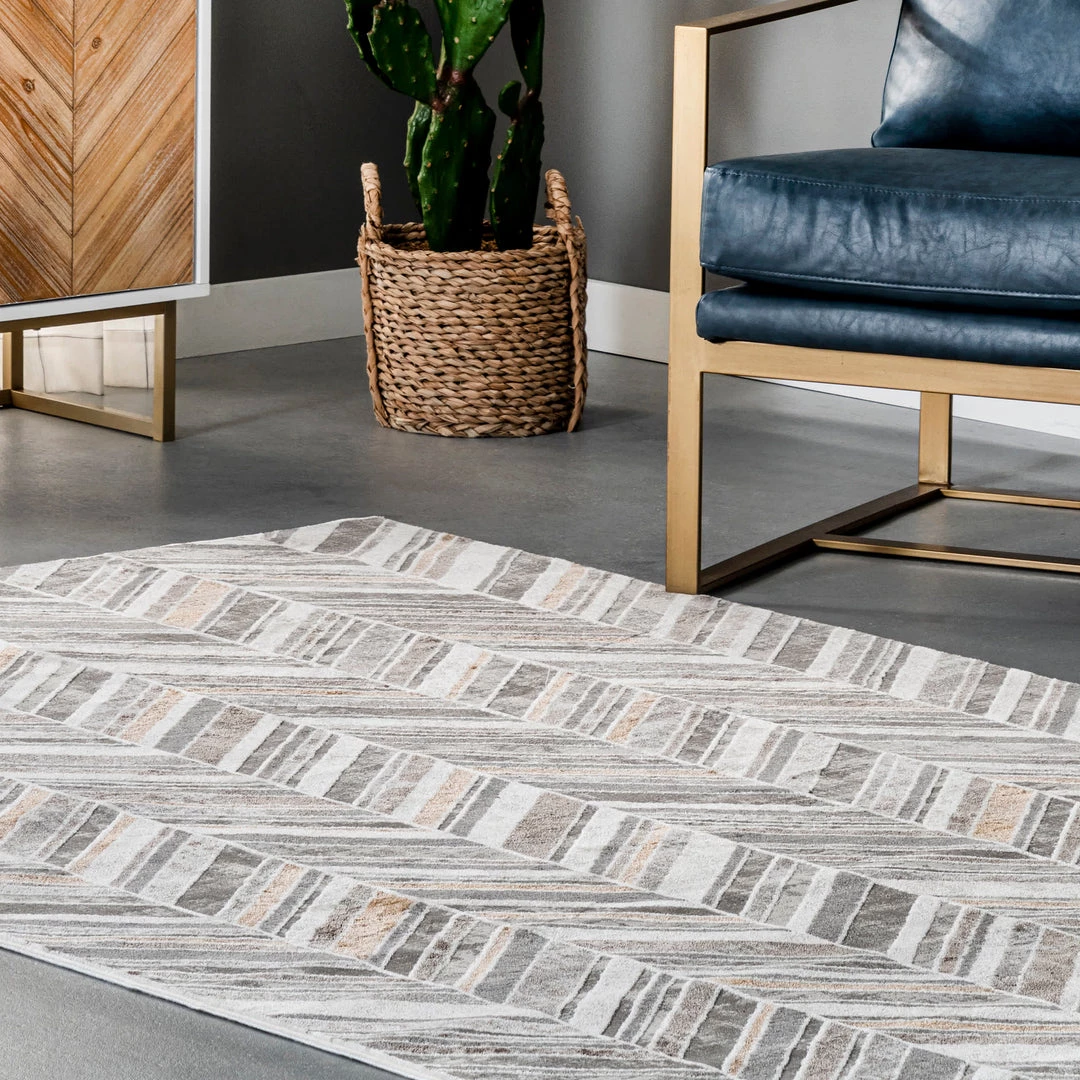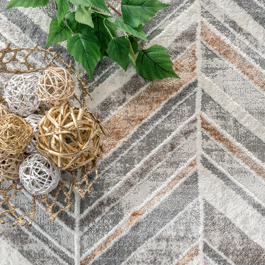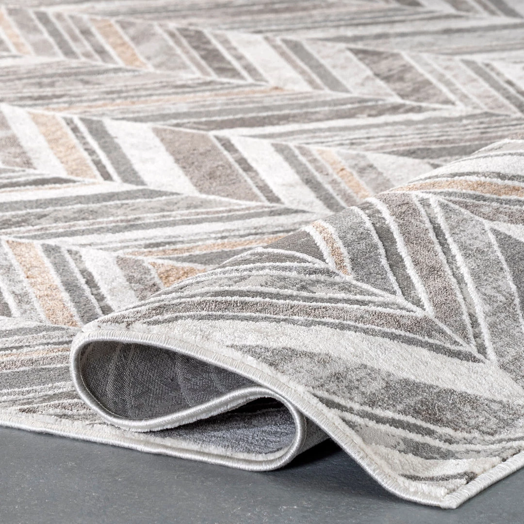 Do you need a creative touch to turn your room from bland to stunning? This contemporary style rug is sure to make a statement with its chevron pattern and sophisticated soft texture. The durable, stain-resistant material is gentle on delicate feet, yet tough enough to stand up to spills and stains.