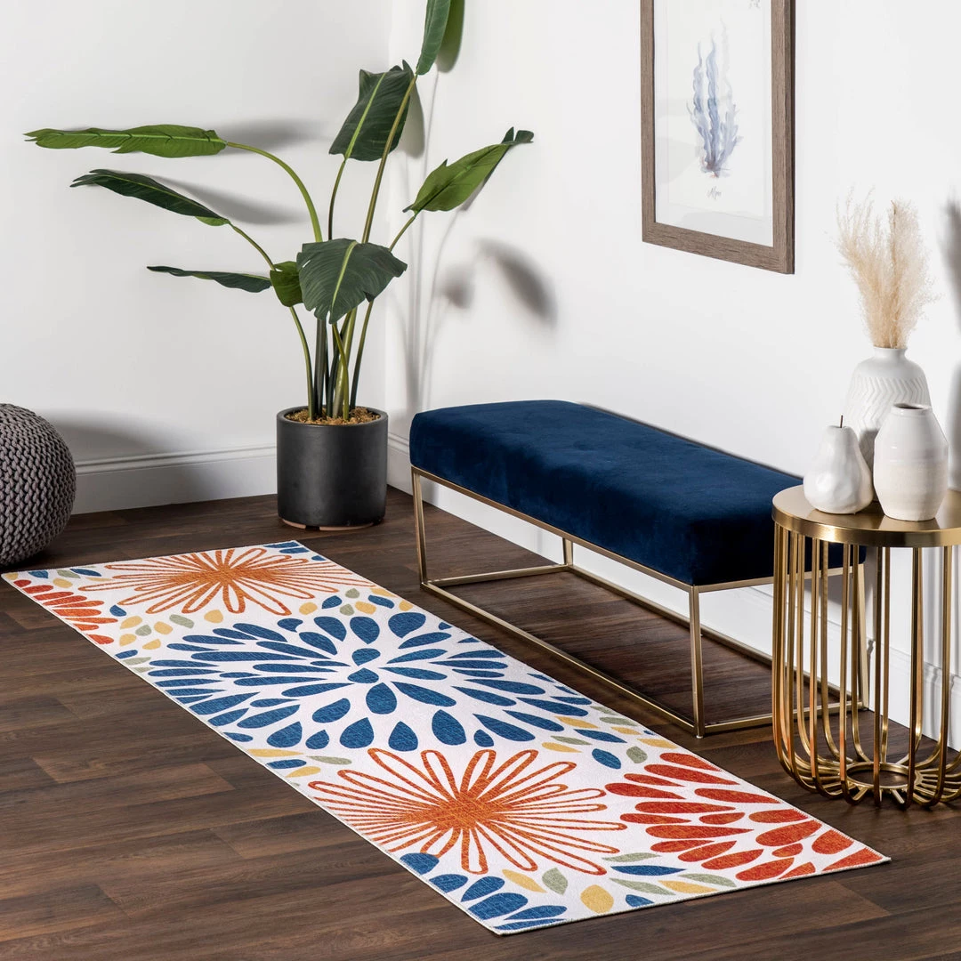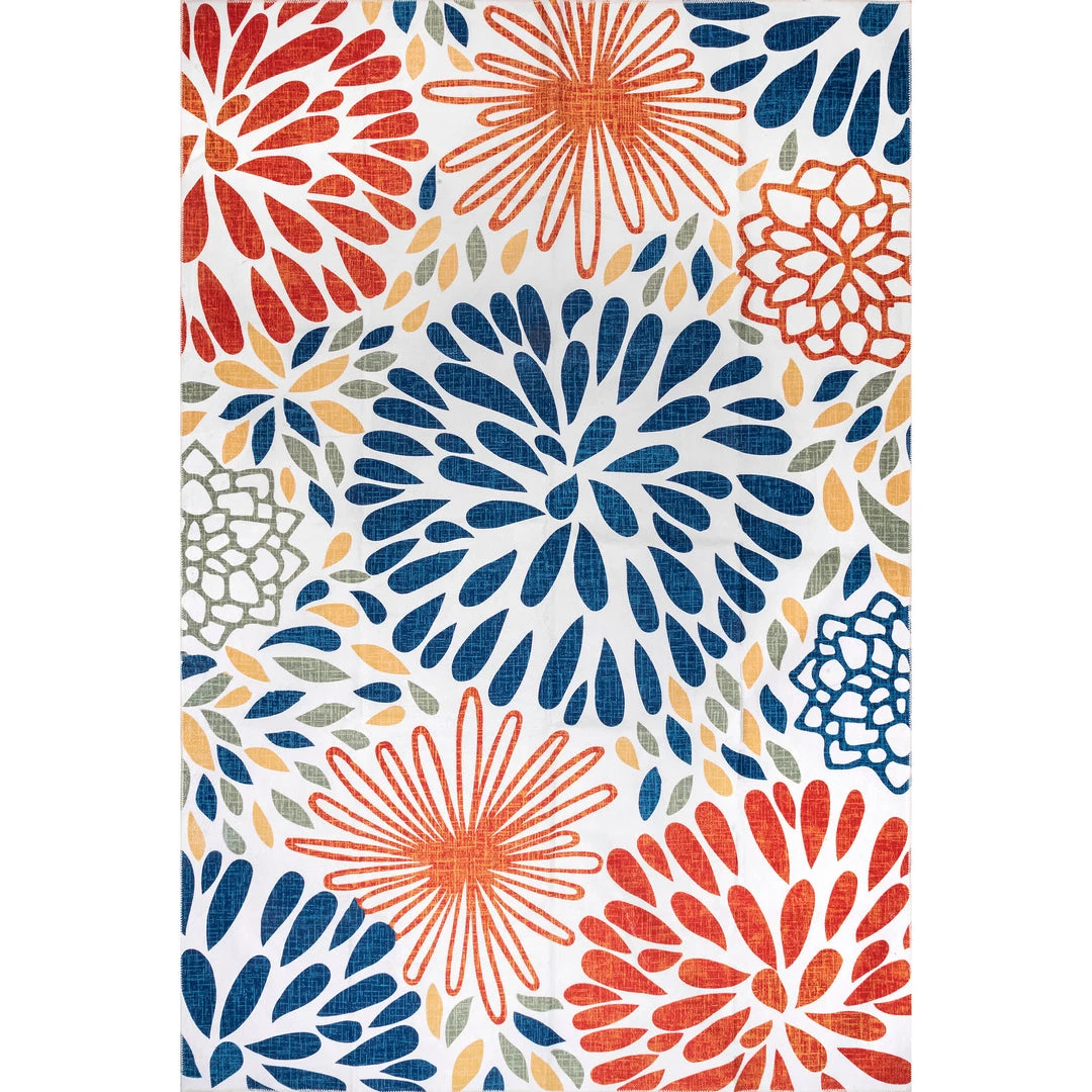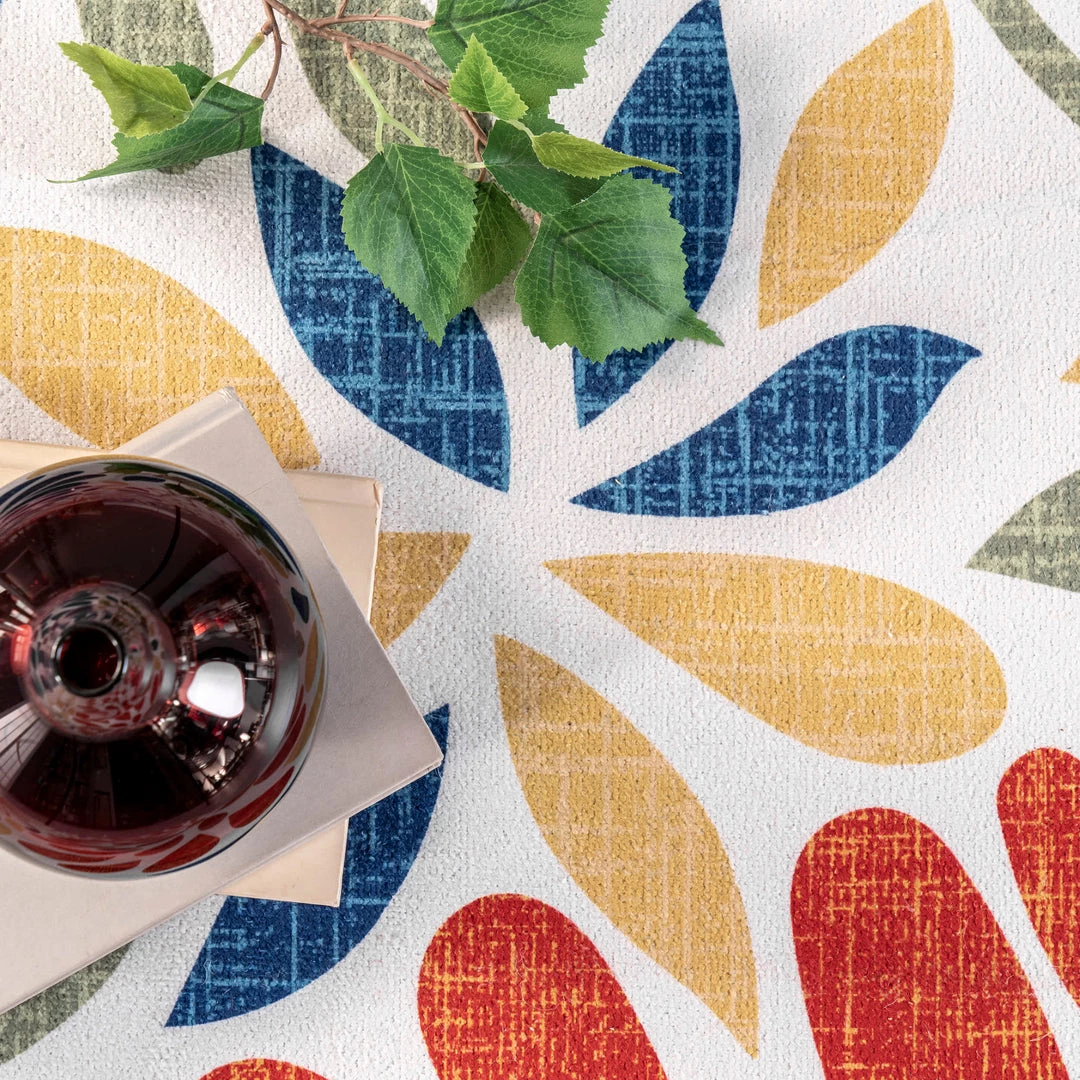Add a pop of color to your space with our bohemian floral machine washable area rug. Made from sustainably-sourced, premium recycled synthetic fibers, this washable area rug is made to withstand regular foot traffic. Our machine-washable collection is functional and stylish to keep up with your busy lifestyle. Simply roll your rug up, throw it in the washing machine, and you’re done! Elevate your space with our pet-friendly and easy to clean area rugs.