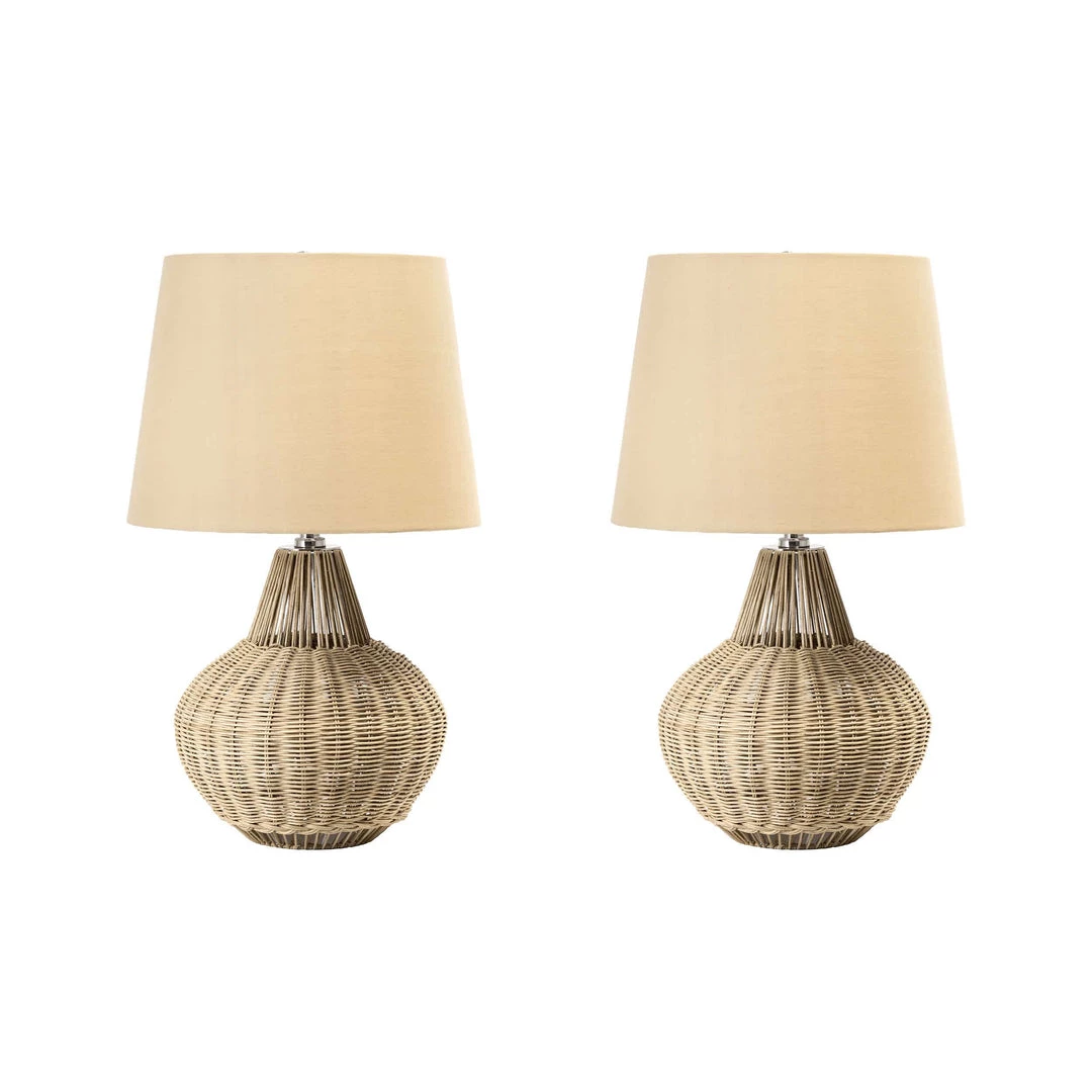 Place this versatile table lamp on a side table, end table, or desk to provide more light for reading or watching television. The rattan gourd shape base gives off a coastal look, while the classic fabric empire lampshade ensures ample lighting. The simple on-off switch allows for ease of use and functionality.