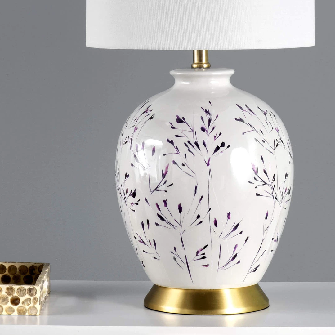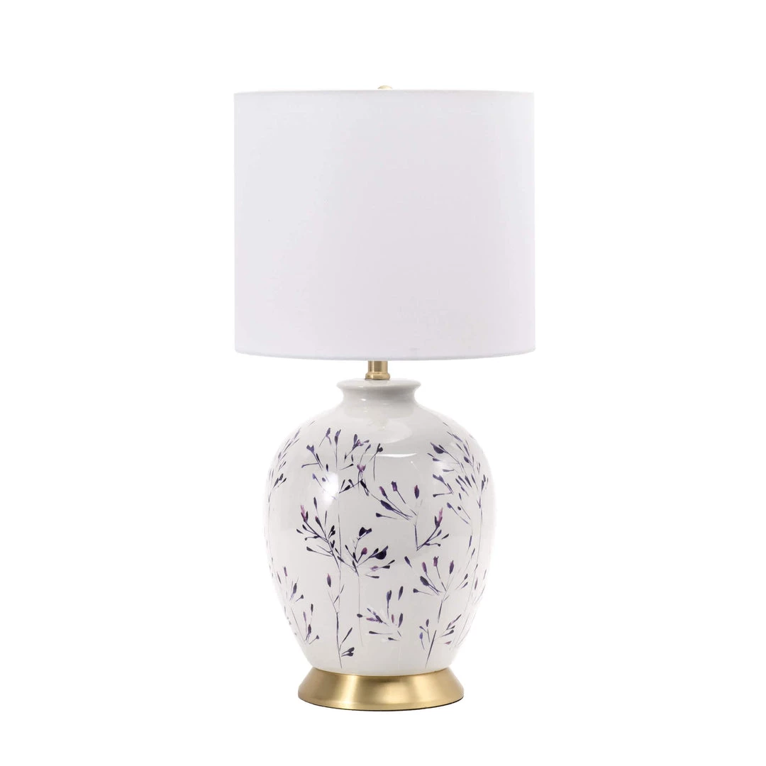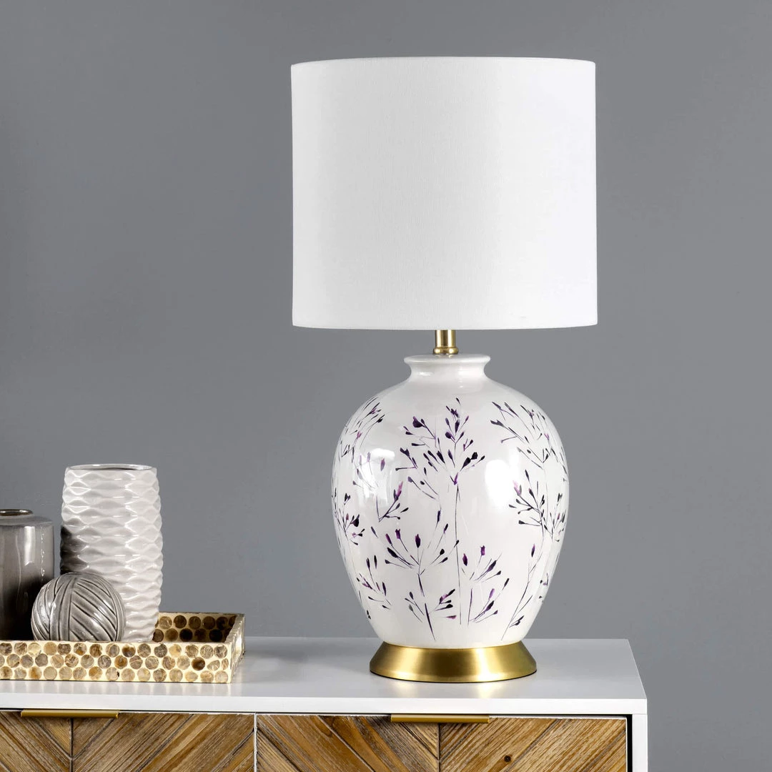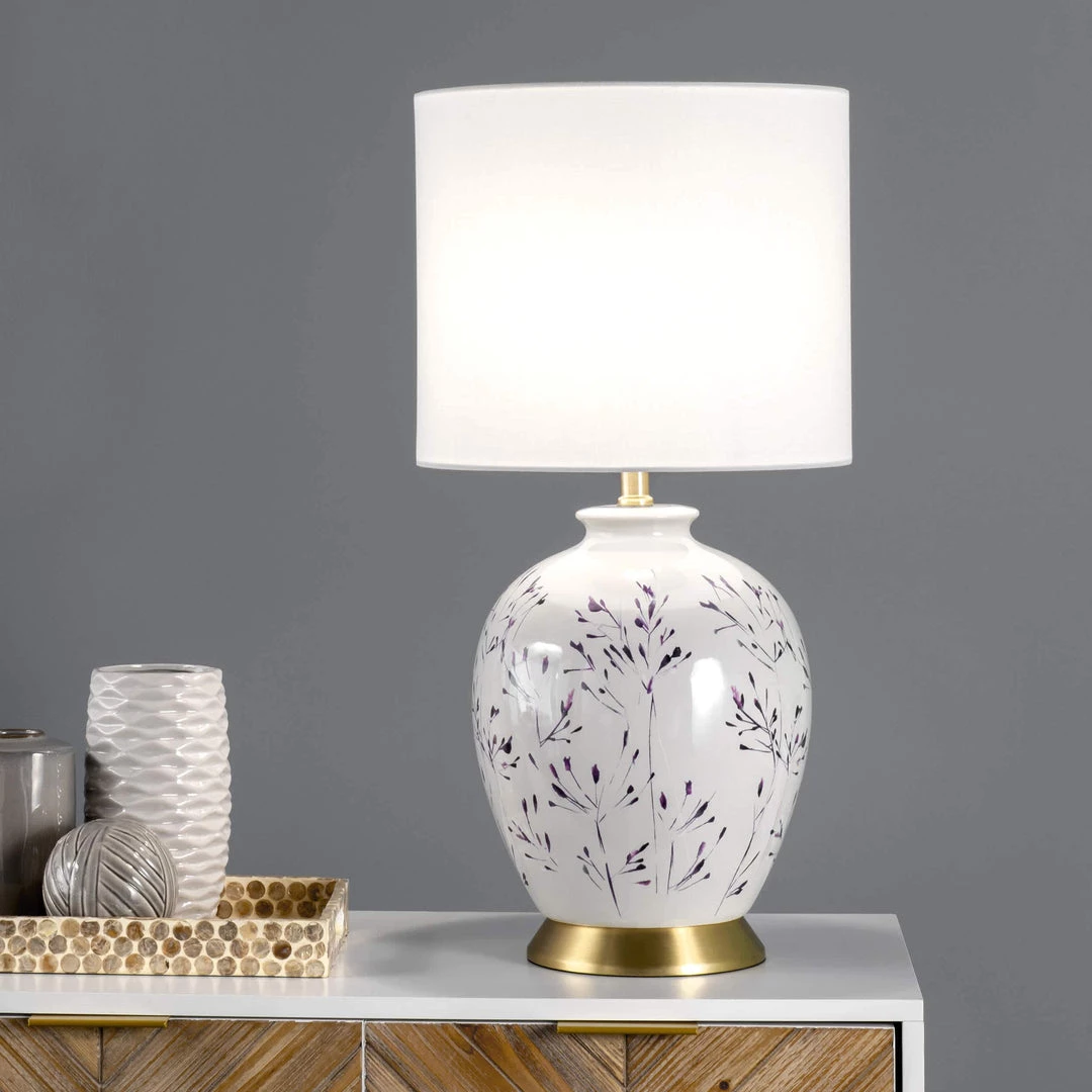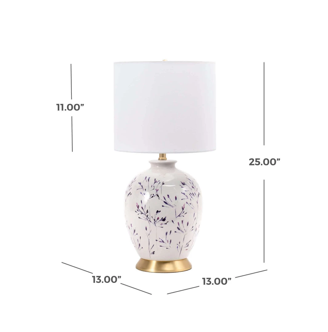Let your room shine with the addition of this traditional, 25-inch high, urn shaped table lamp. It has a white fabric drum shade that delivers ambient lighting.