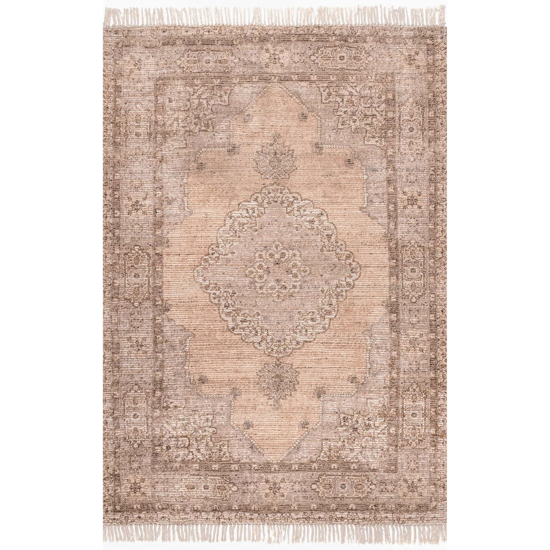 Artfully handwoven by artisans in India, this rug embodies classic Persian design. The blend of surface dyed jute and polyester fibers give this the look of a vintage market find.